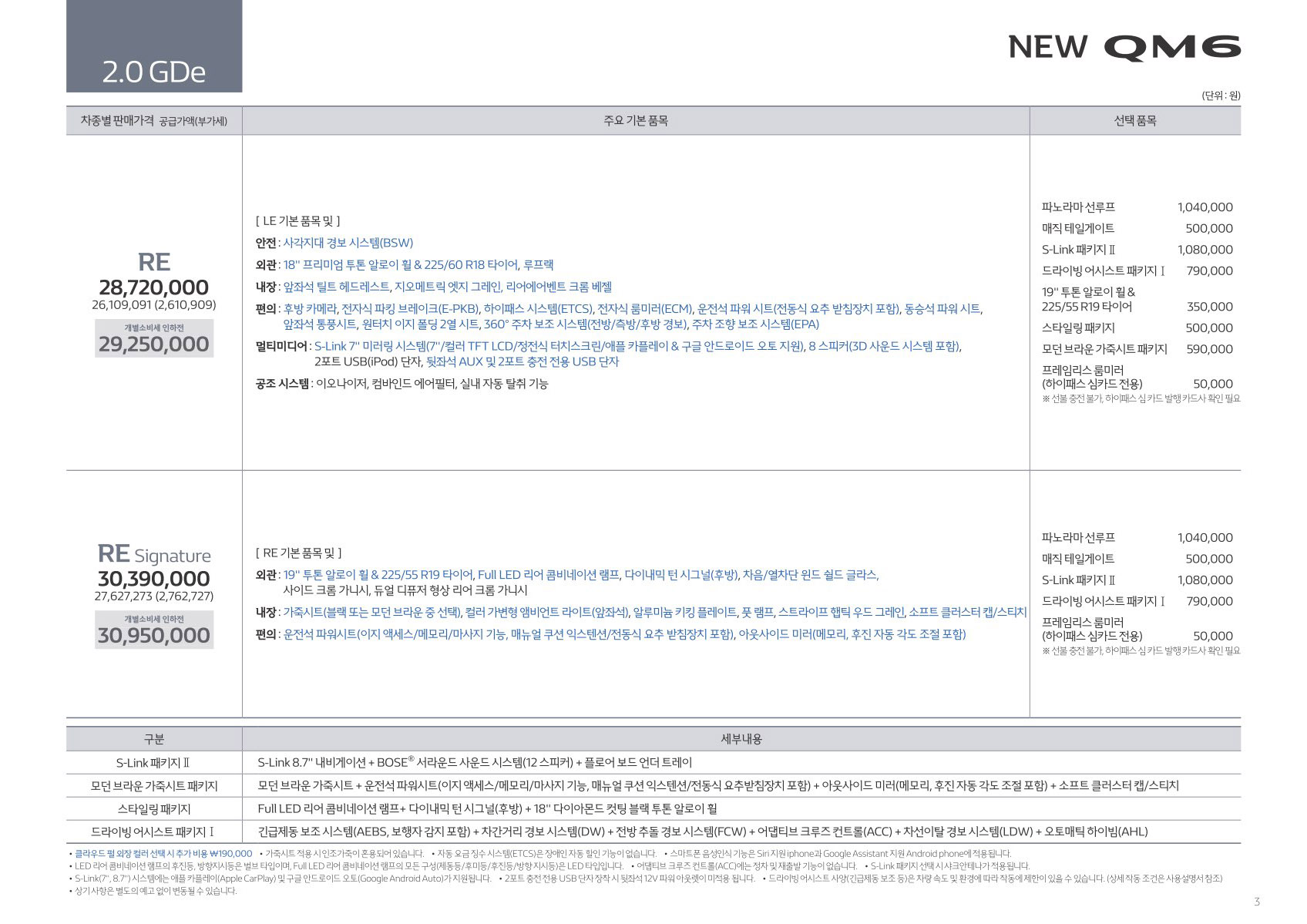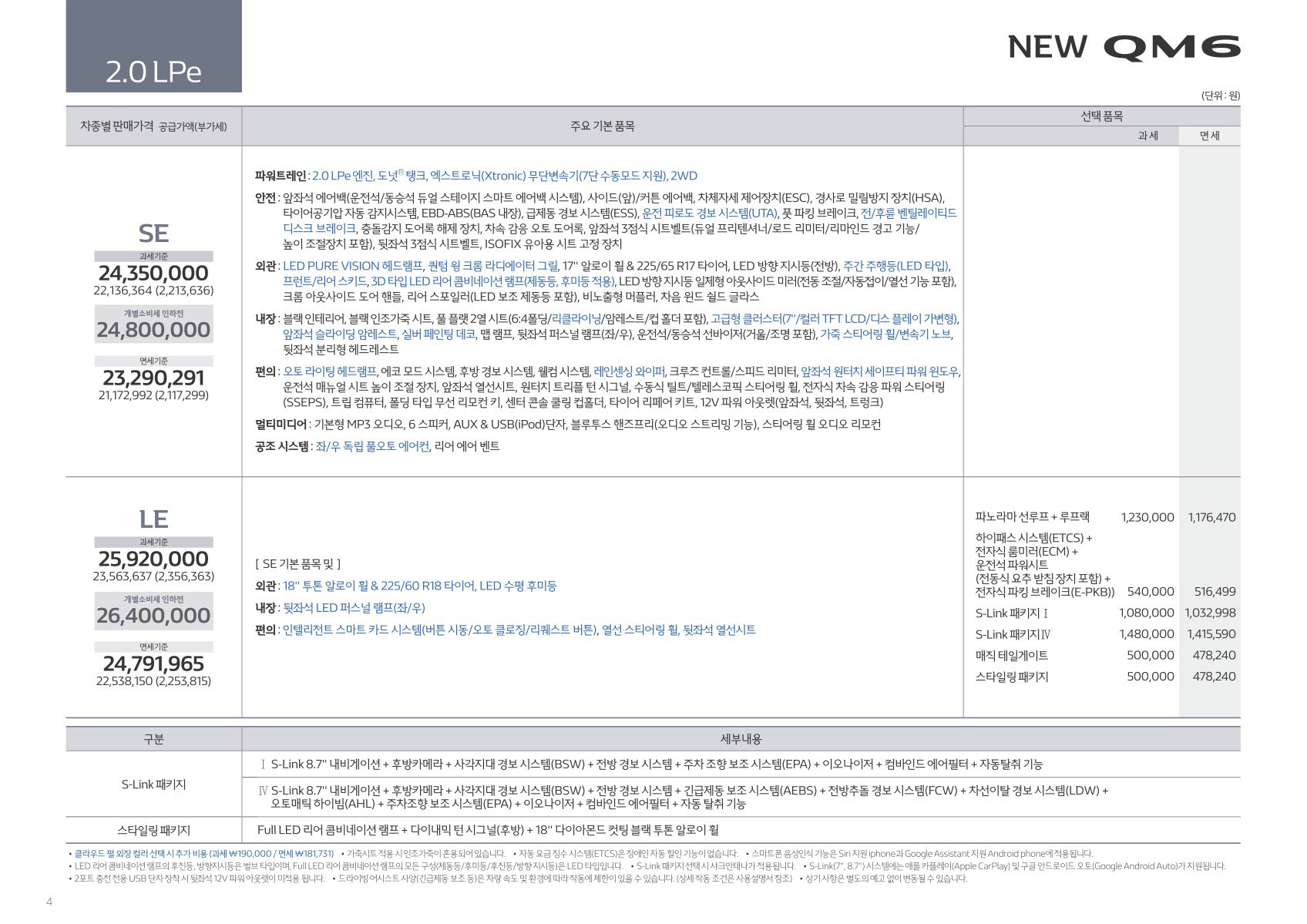 2021년 3월 QM6 신차가격표 (뉴QM6 DCi 디젤출시)