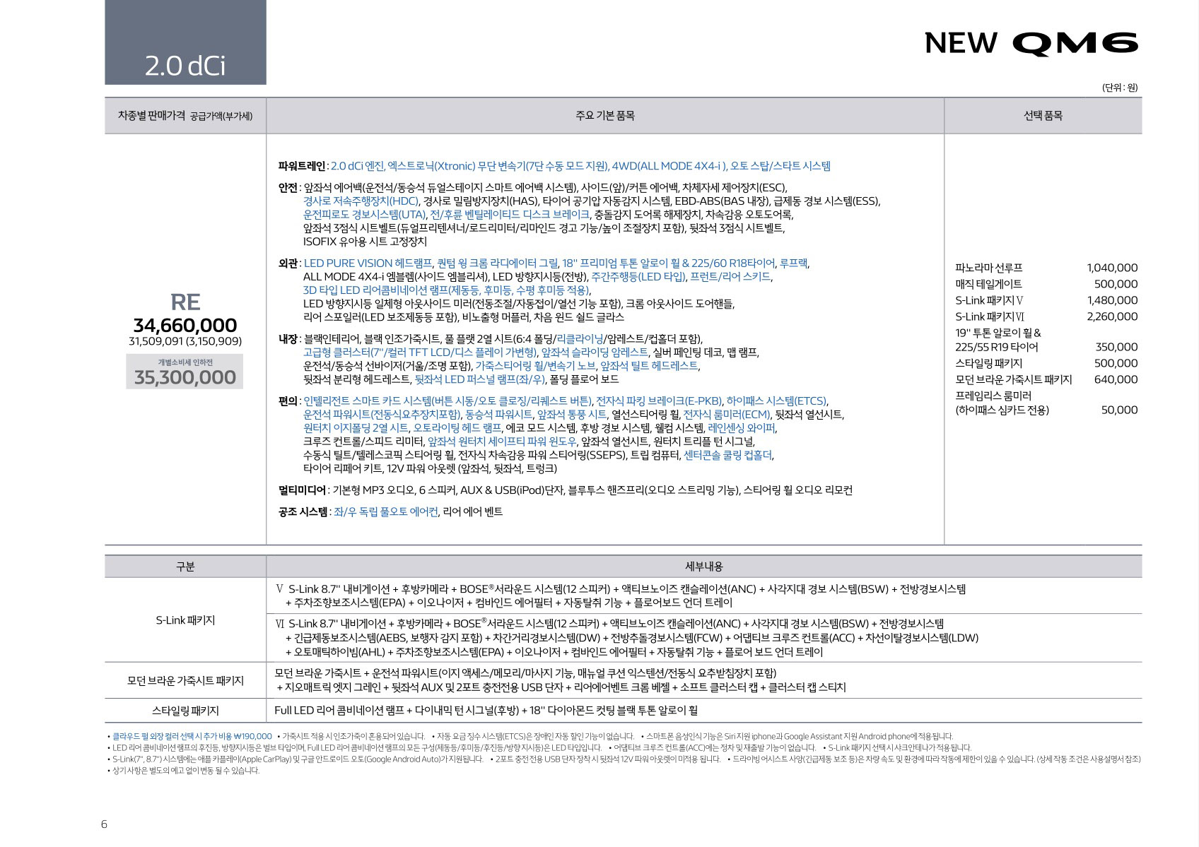 2021년 3월 QM6 신차가격표 (뉴QM6 DCi 디젤출시)