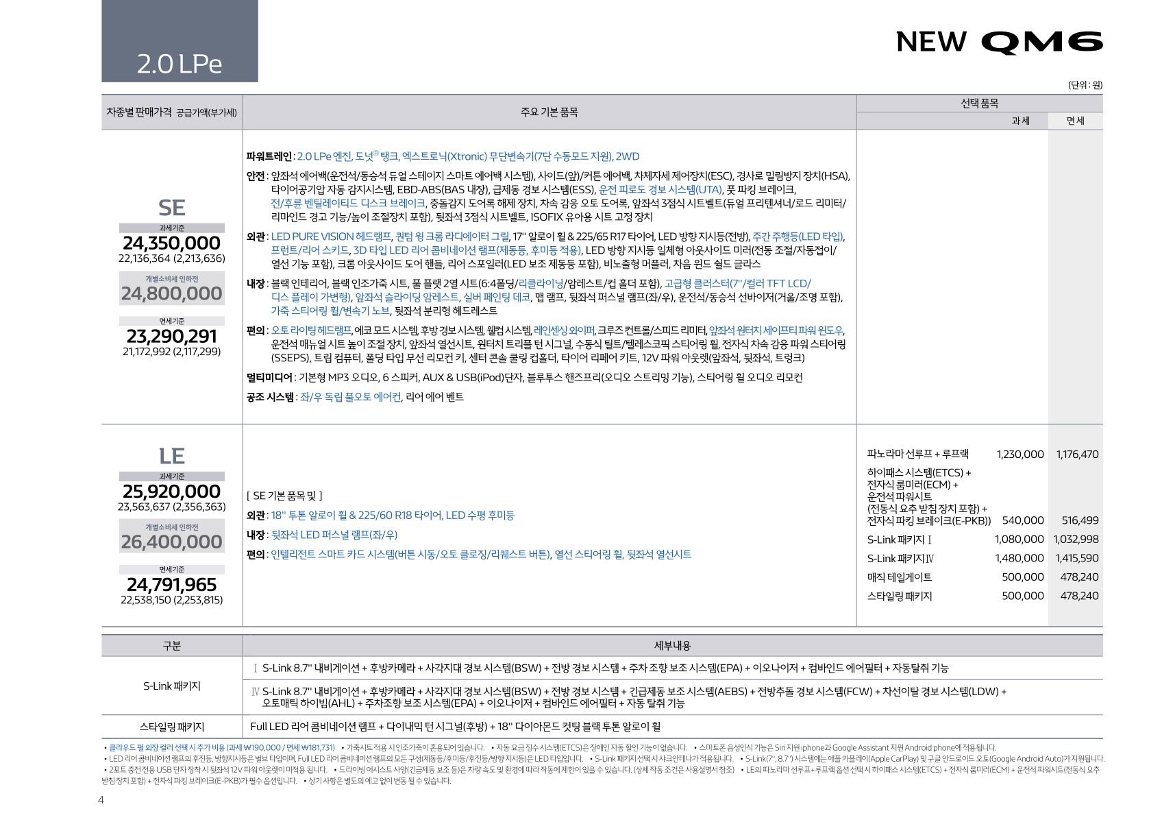 2020년 11월 QM6 신차가격표 (뉴 QM6 출시)