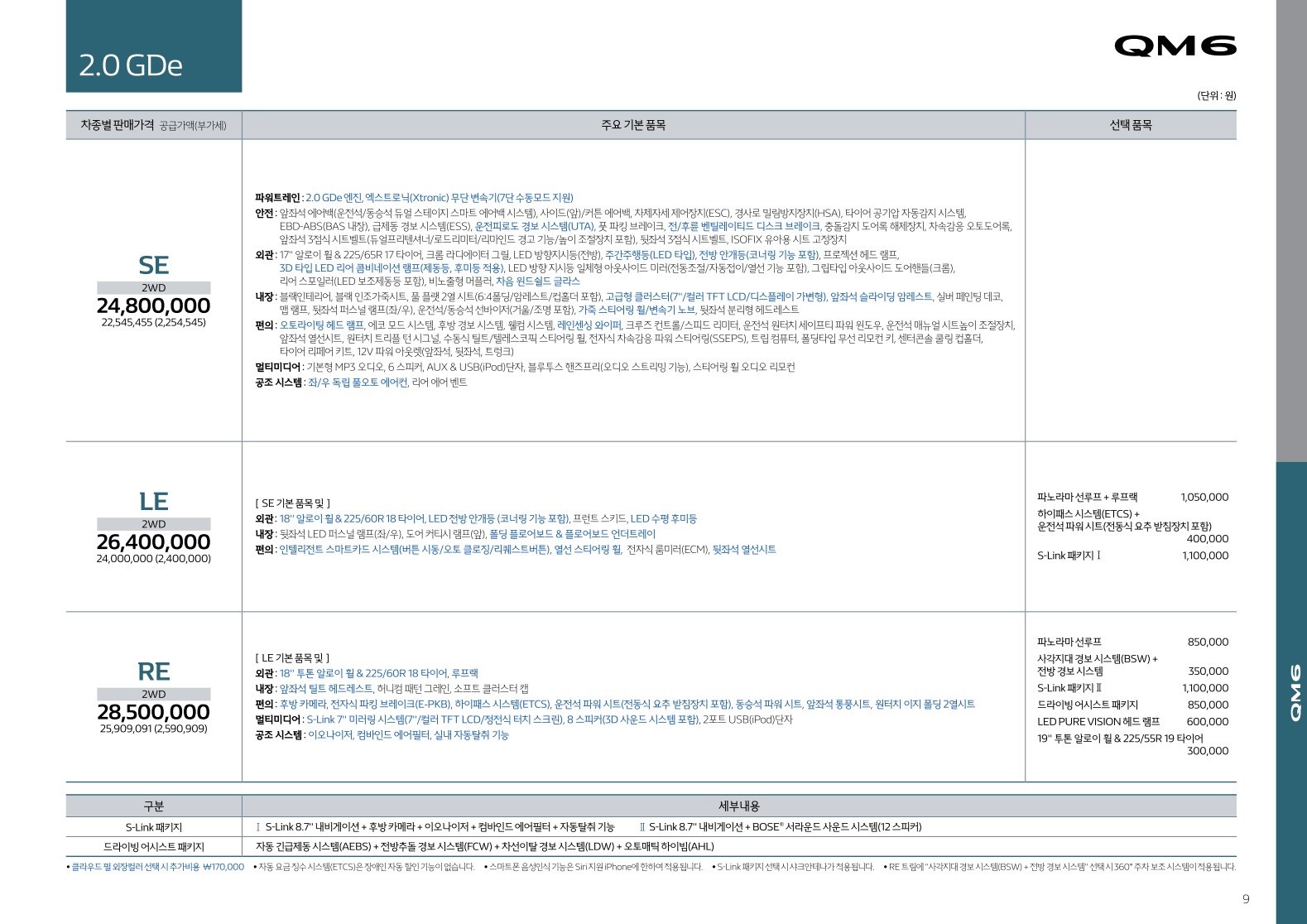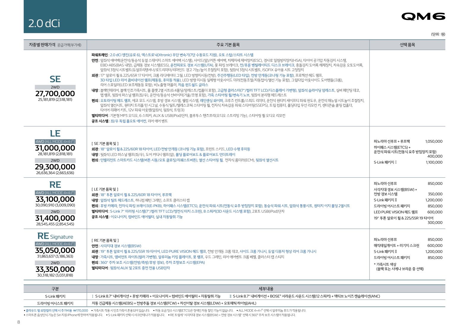 2018년 3월 SM6 신차가격표 (2019년형 출시)
