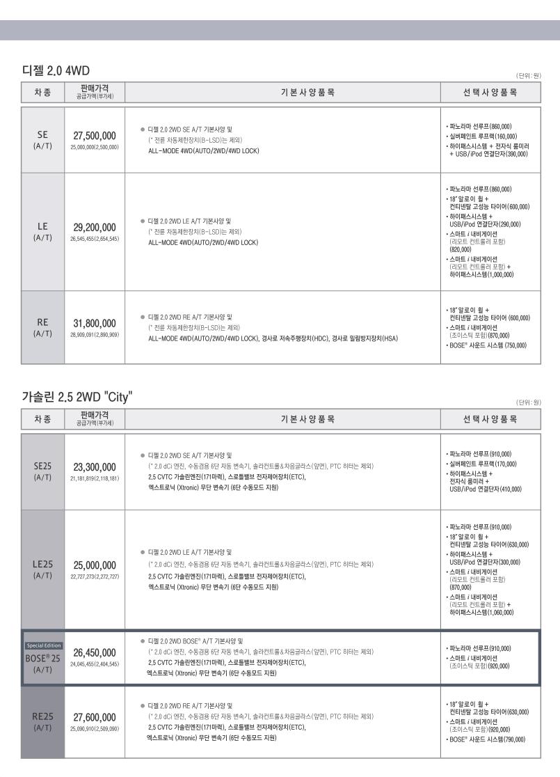 ※ 본 가격표의 모든 저작권은 해당 차량 제조사에 있습니다.