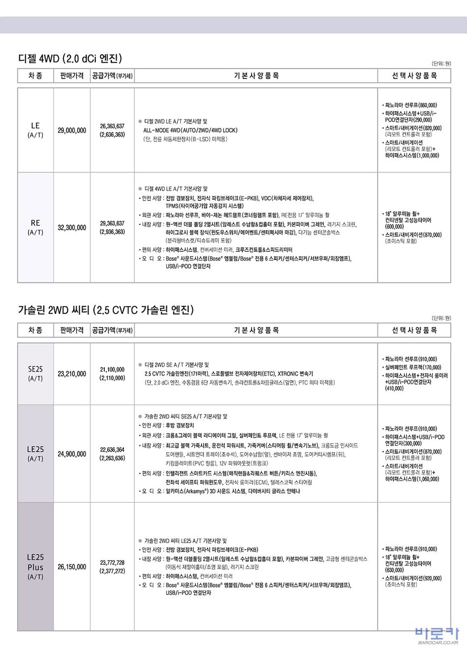※ 본 가격표의 모든 저작권은 해당 차량 제조사에 있습니다.