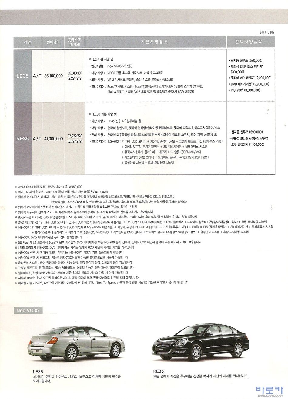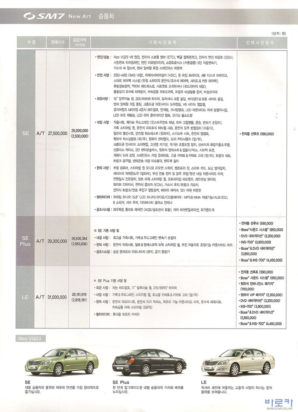 2008년 7월 SM7 (뉴아트) 신차가격표