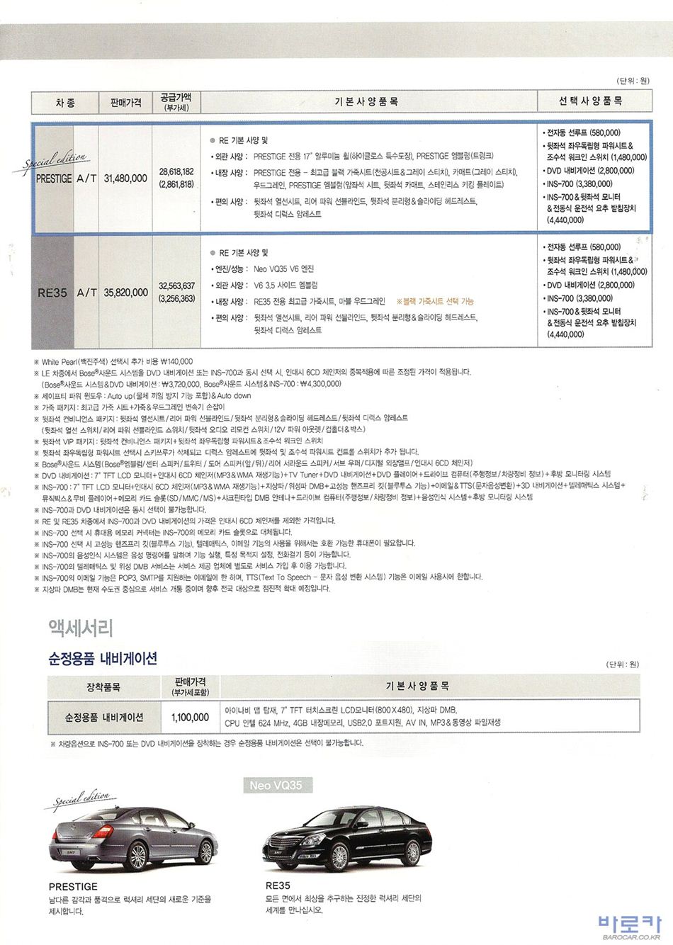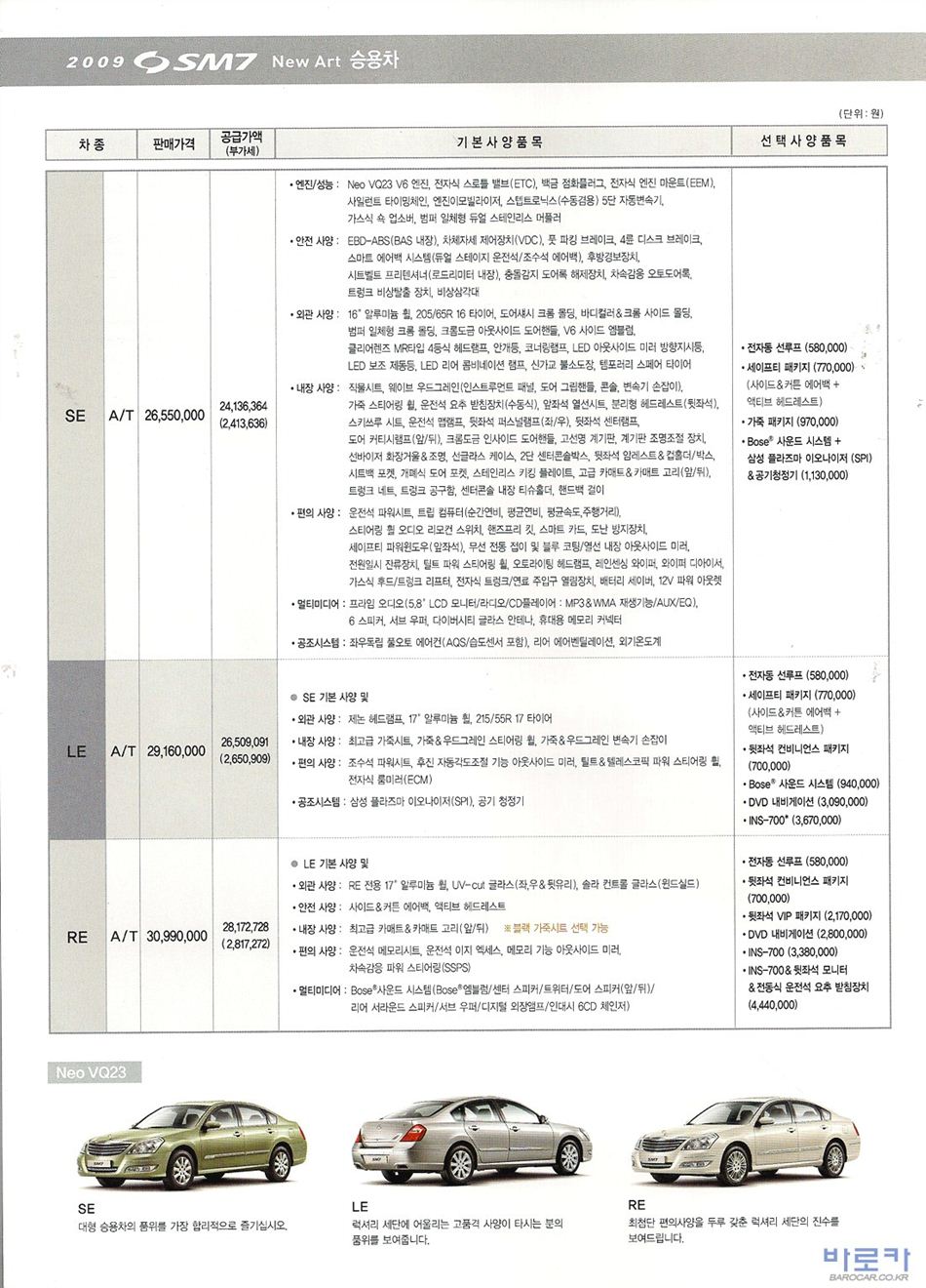 2008년 7월 SM7 (뉴아트) 신차가격표
