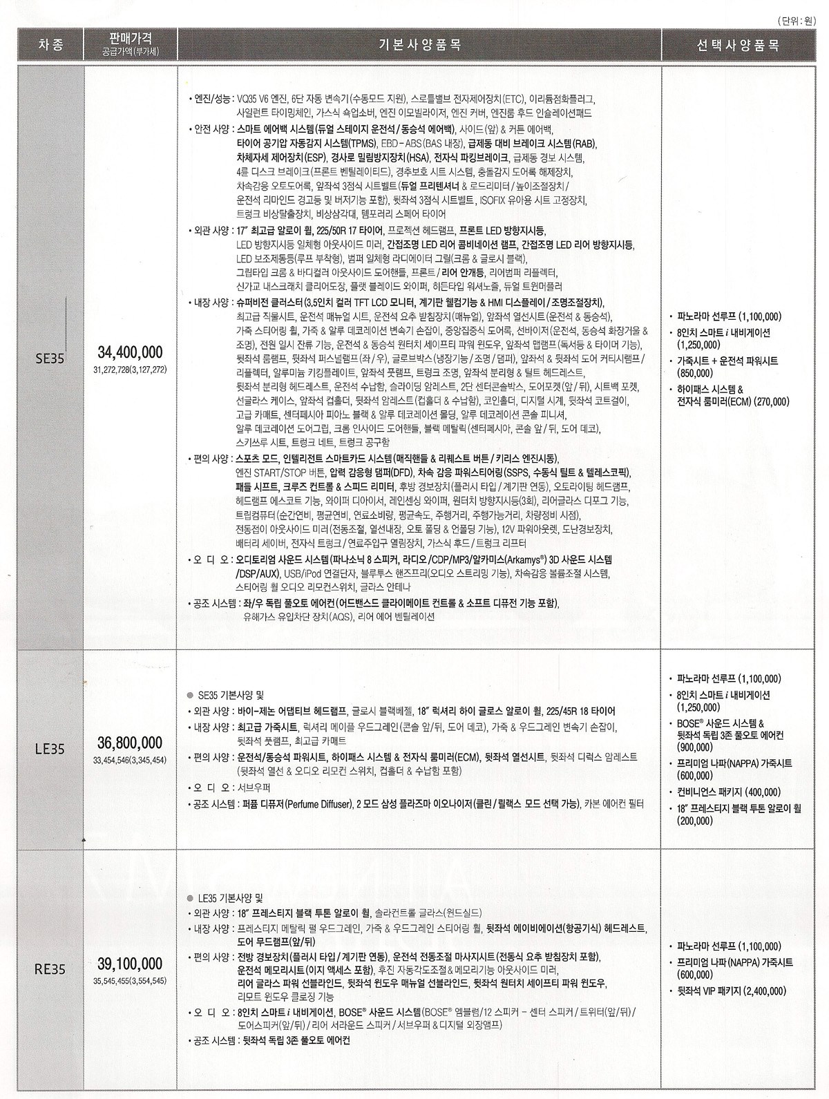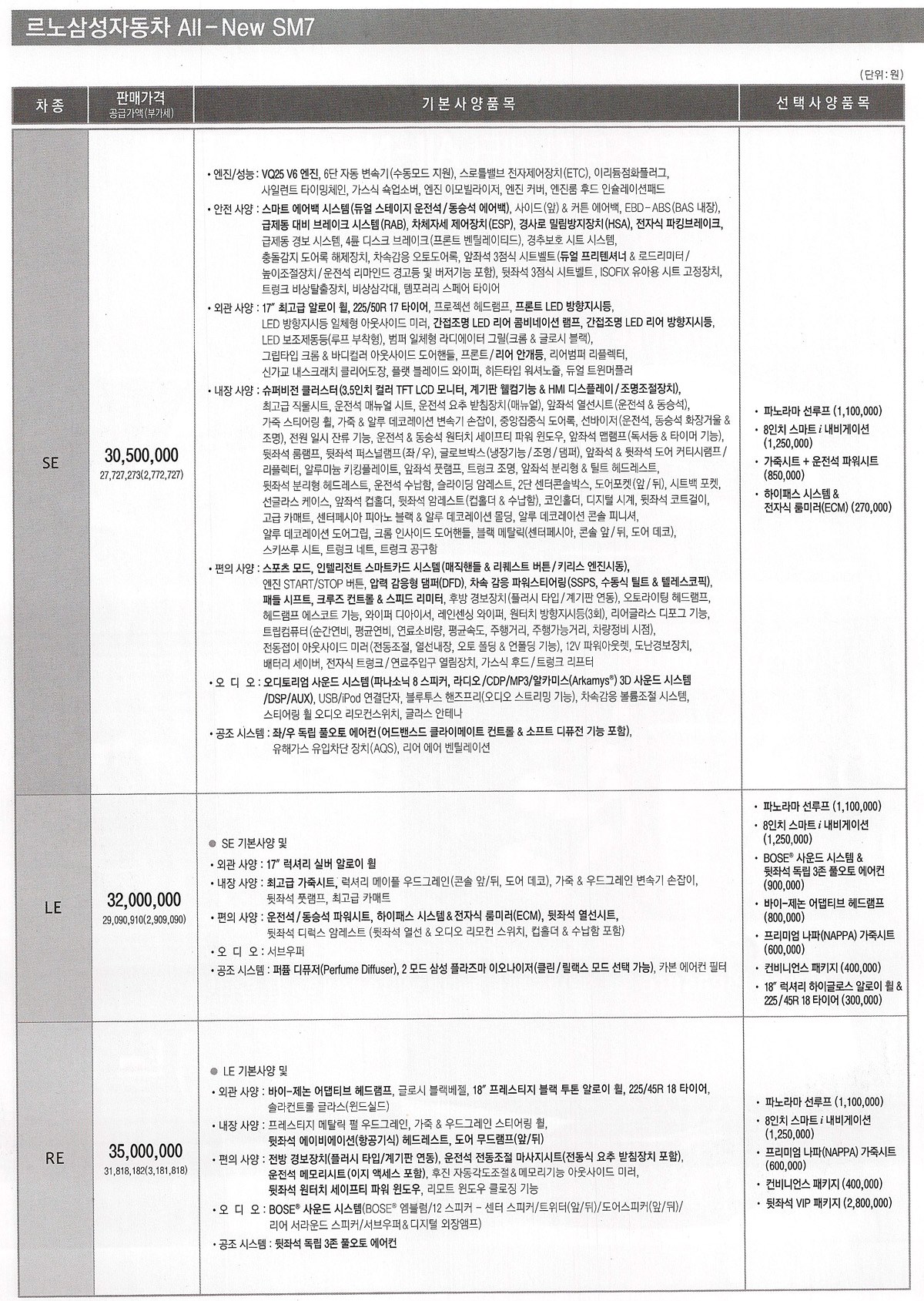 2011년 8월 SM7 (올뉴SM7/L47) 신차가격표
