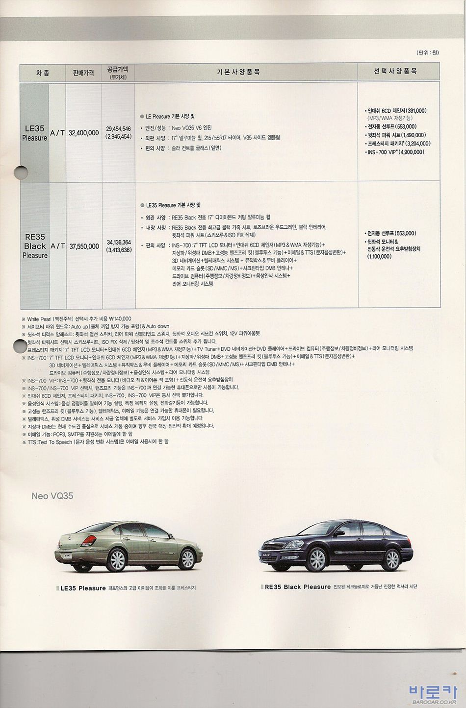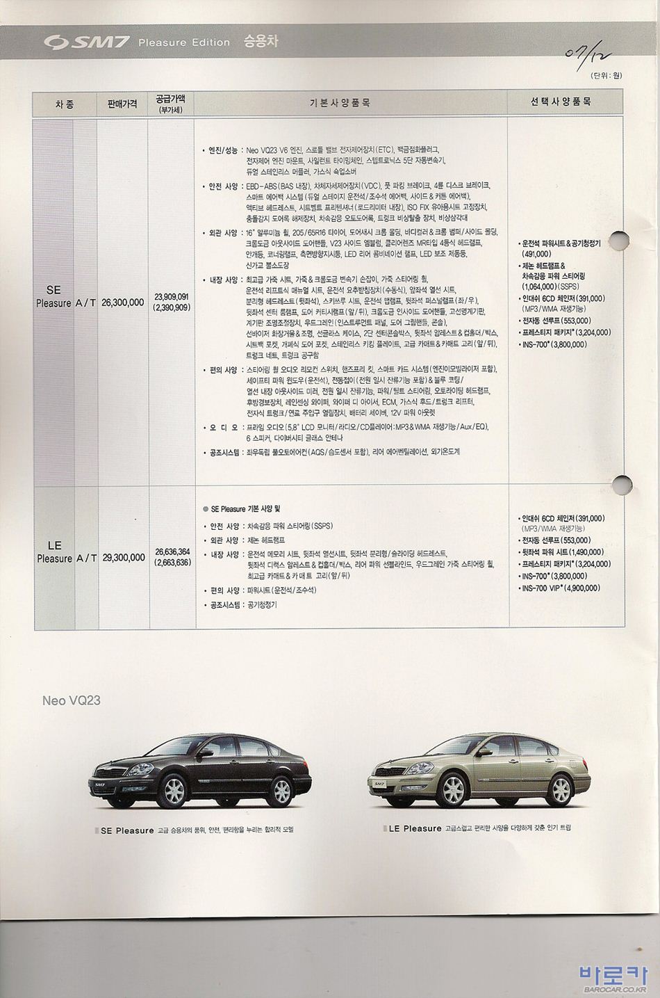 2008년 7월 SM7 (뉴아트) 신차가격표