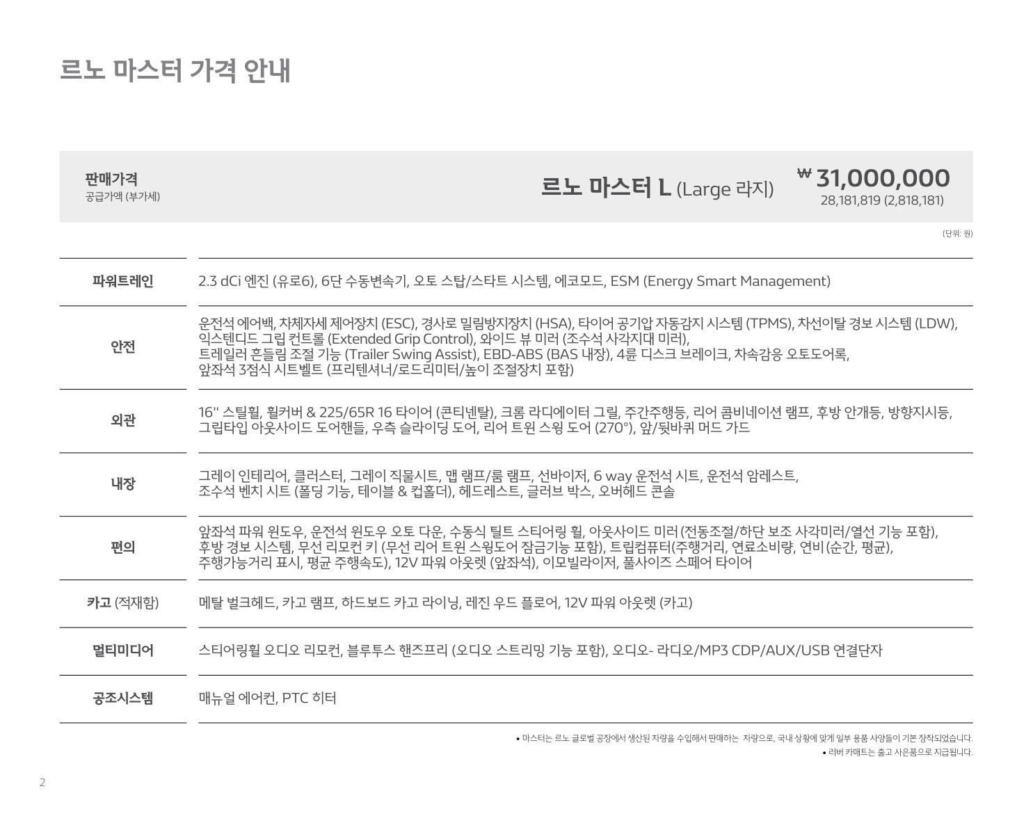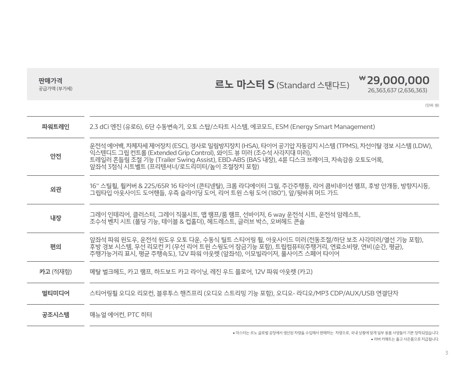 2019년 9월 르노마스터밴 & 마스터버스 신차가격표