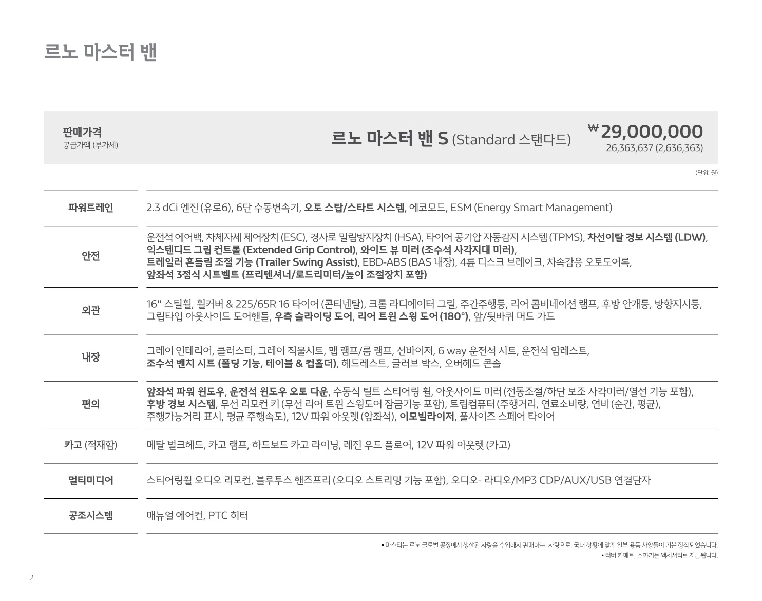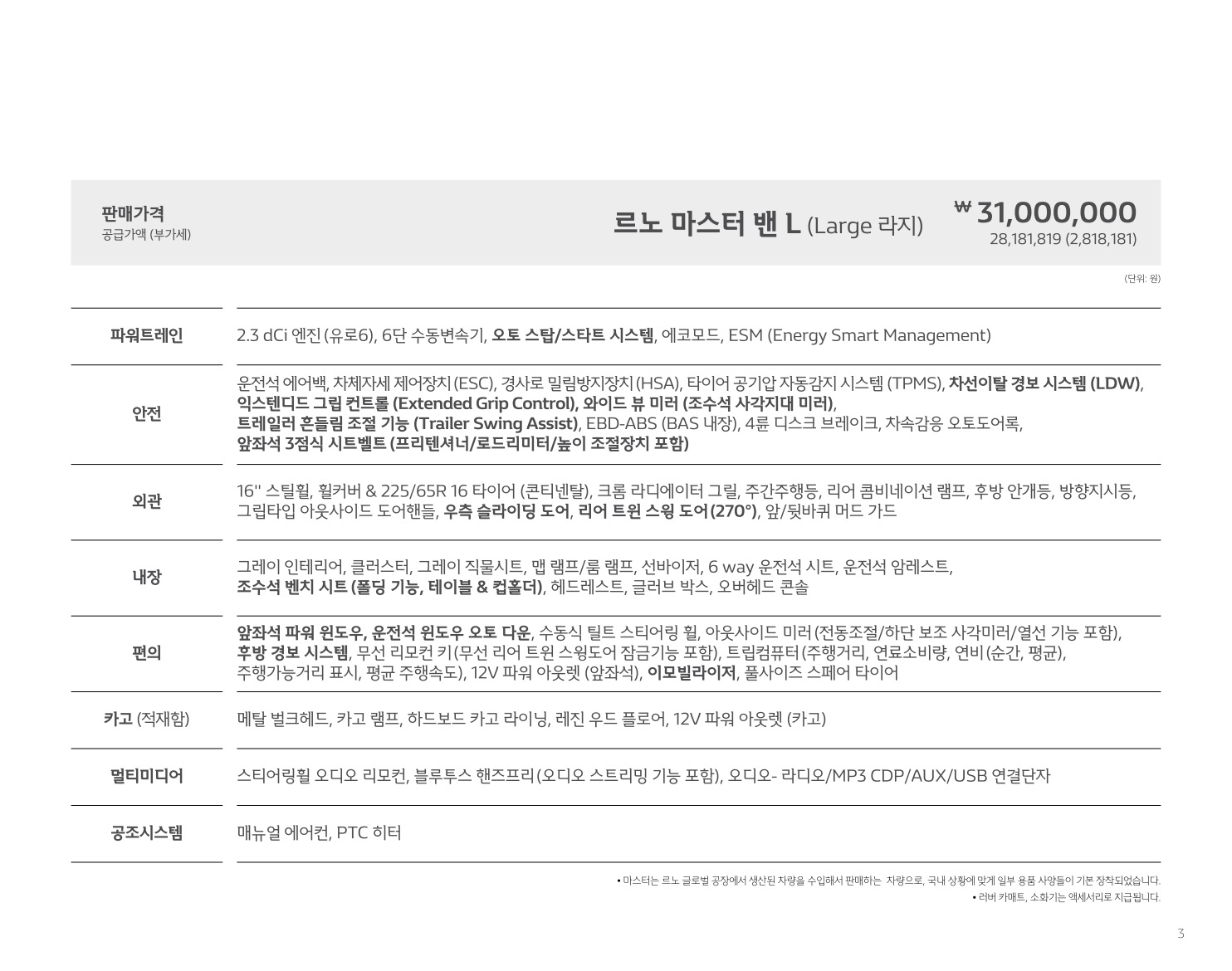 2019년 9월 르노마스터밴 & 마스터버스 신차가격표