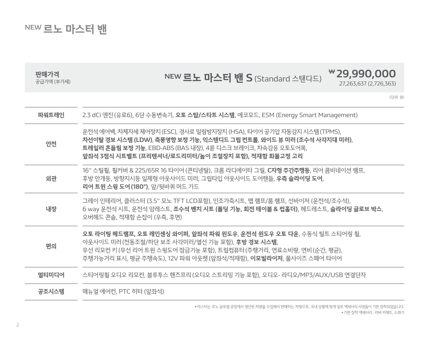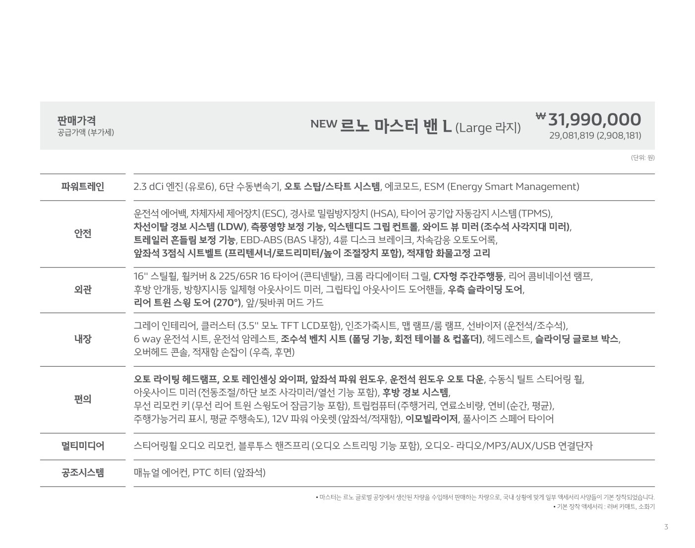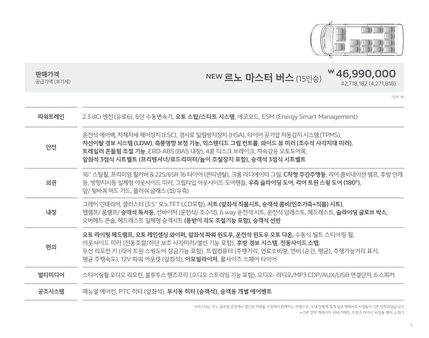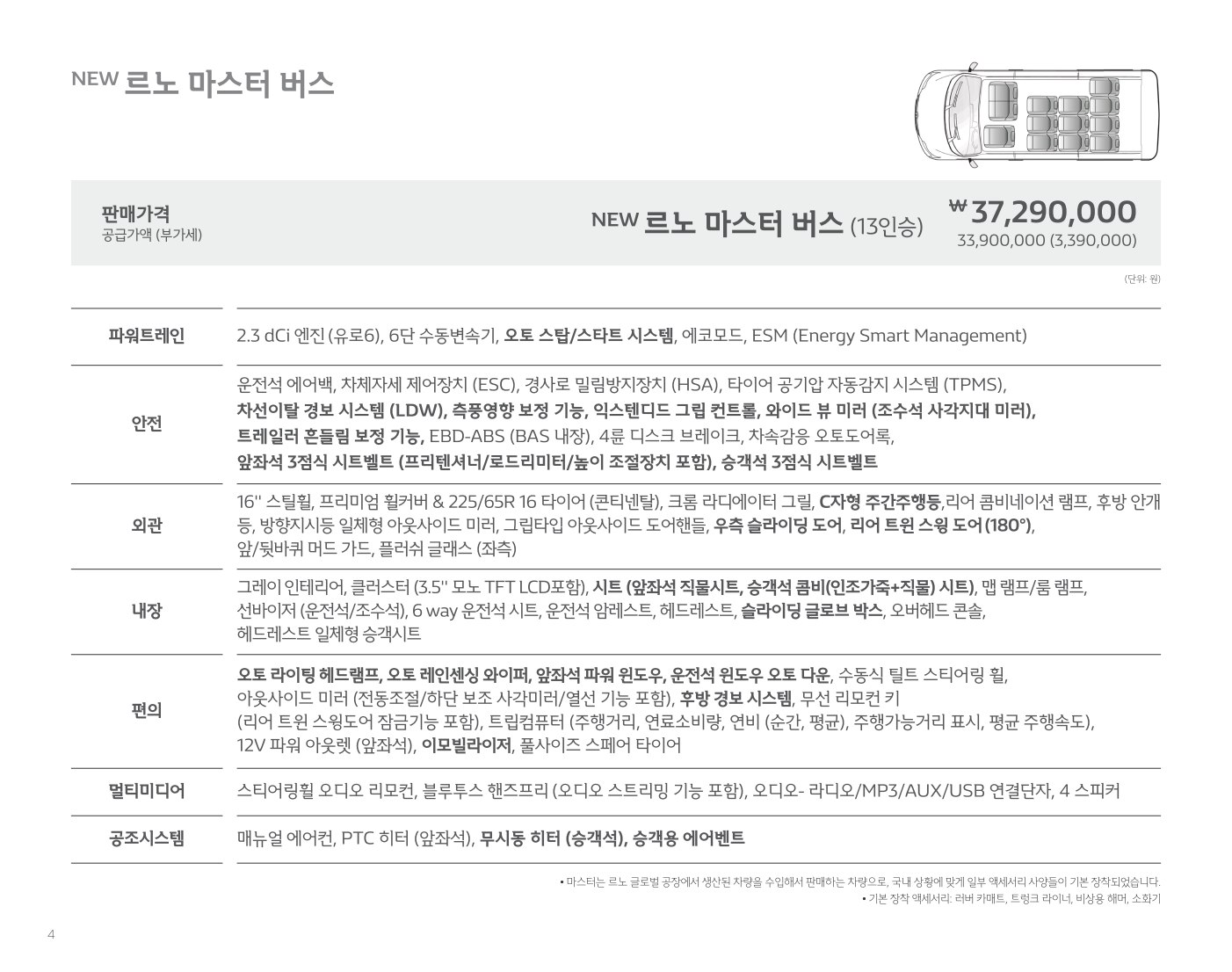 2019년 9월 르노마스터밴 & 마스터버스 신차가격표