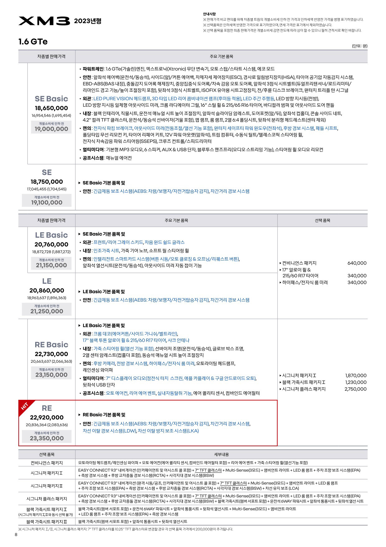 2022년 3월 XM3 신차가격표 (2023년형 XM3 출시)