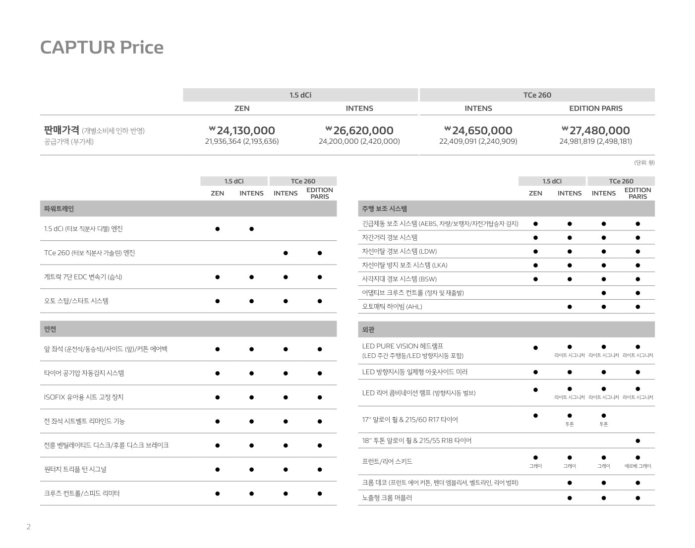 2020년 5월 캡쳐 신차가격표 (캡쳐 국내 출시)
