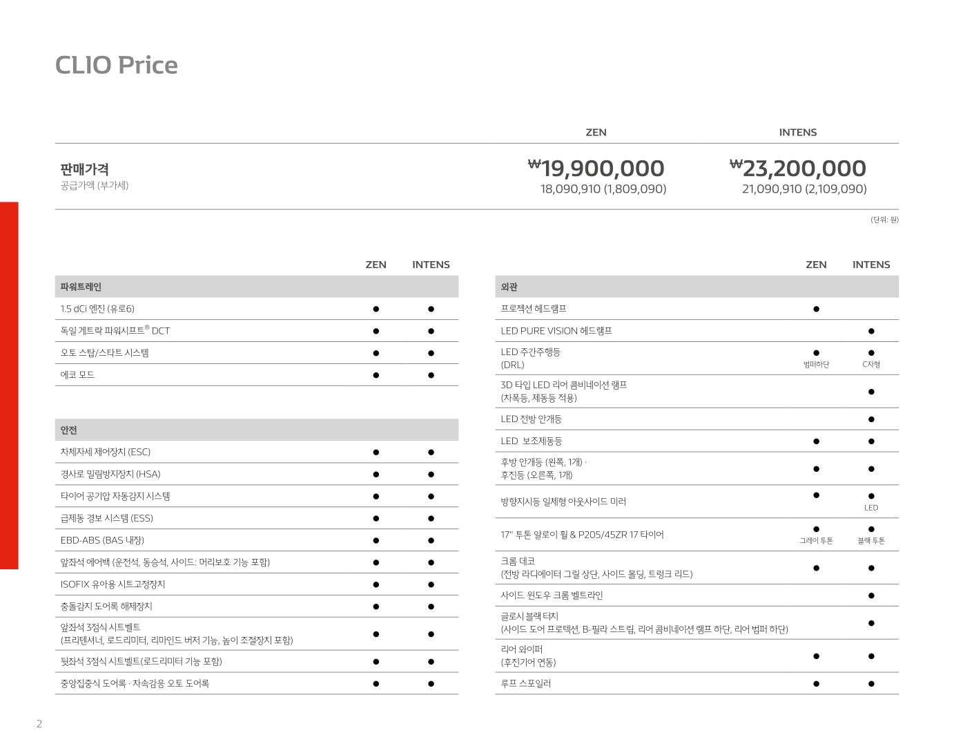 2018년 12월 클리오 가격표 (2019년형 출시)