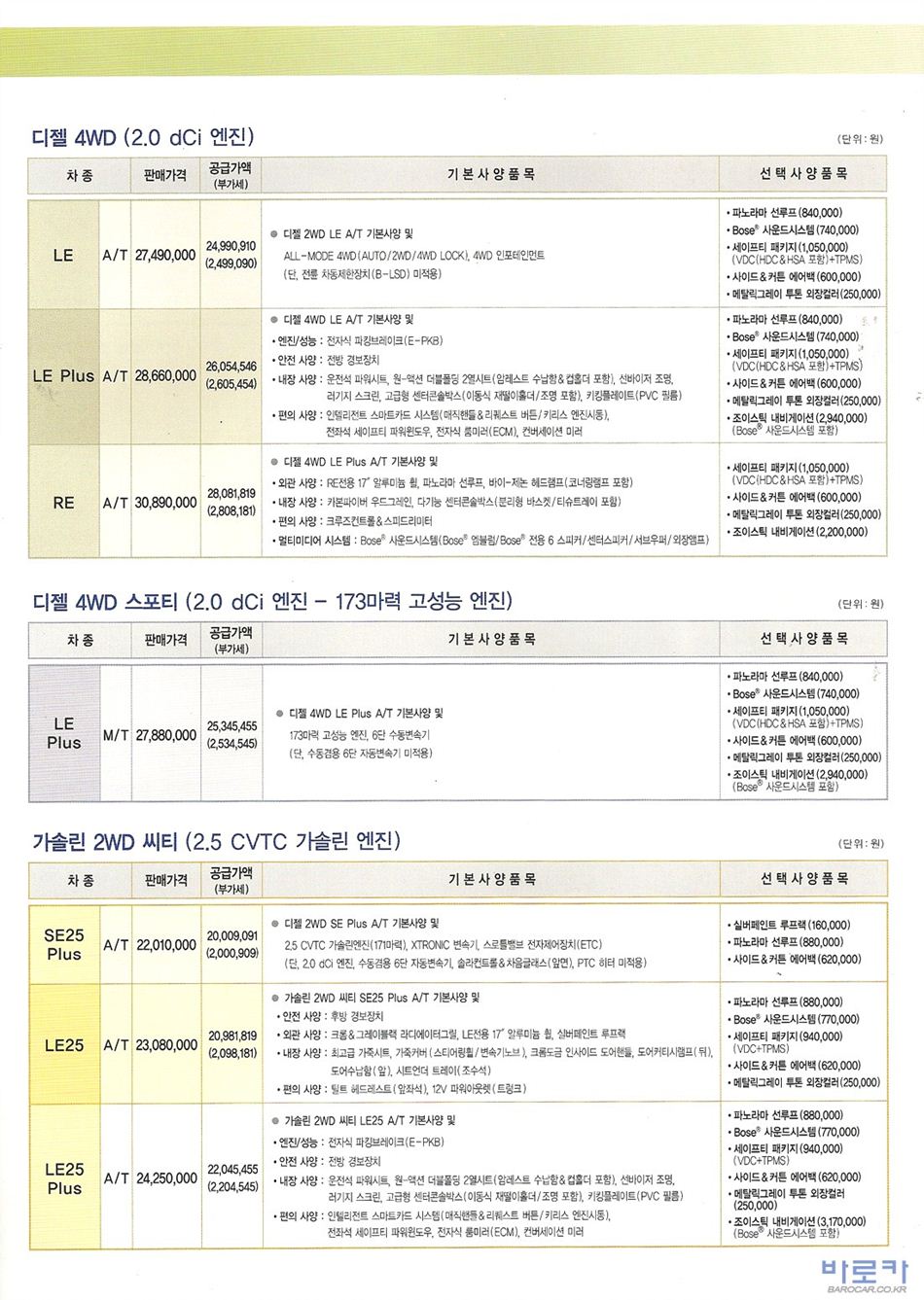 ※ 본 가격표의 모든 저작권은 해당 차량 제조사에 있습니다.