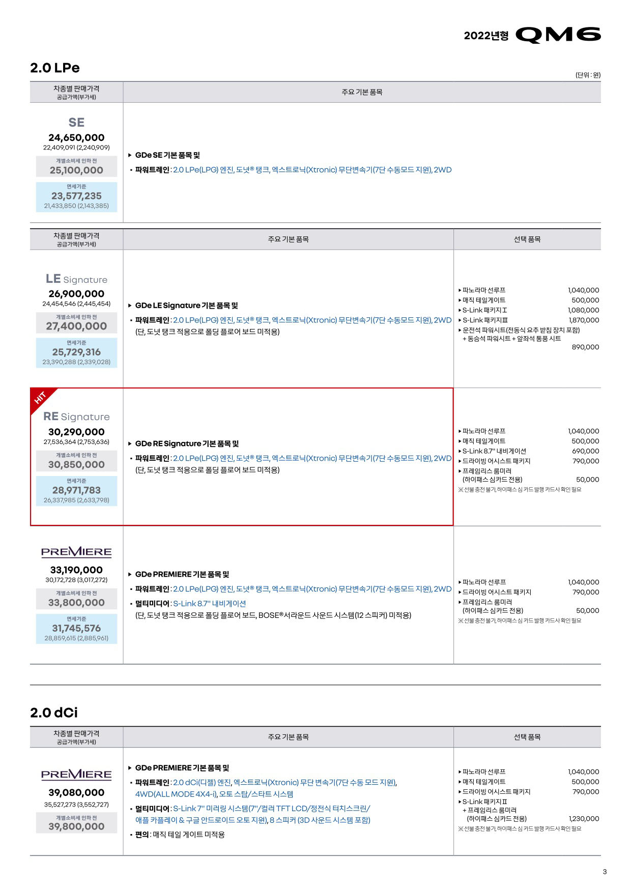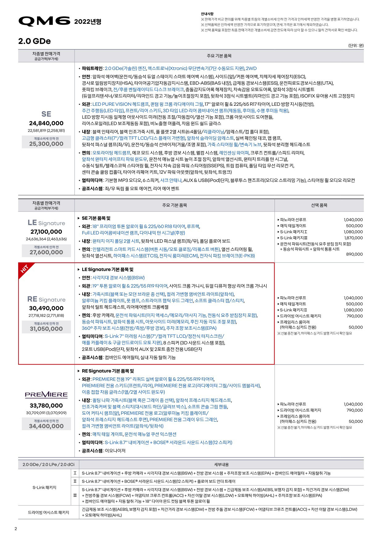 2022년 6월 QM6 신차가격표 (2023년형 QM6)