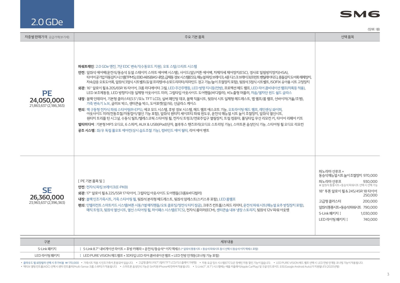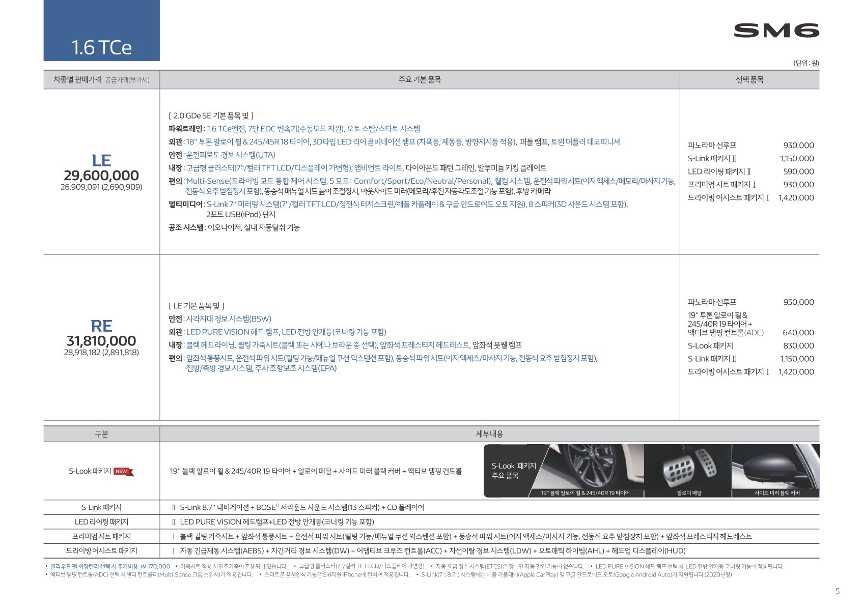 2019년 7월 SM6 가격표 (2020년형 SM6 신차가격표)