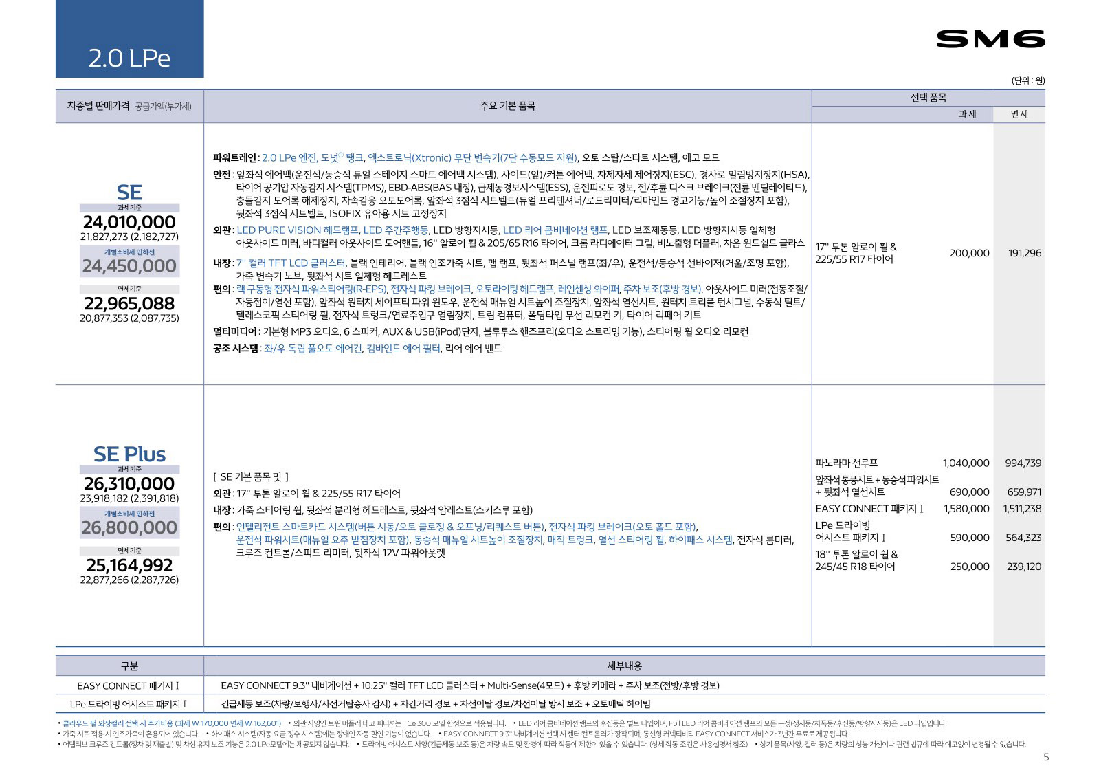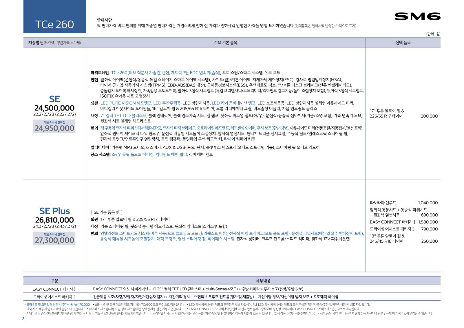 2020년 7월 SM6 신차가격표 (부분변경 모델 출시)