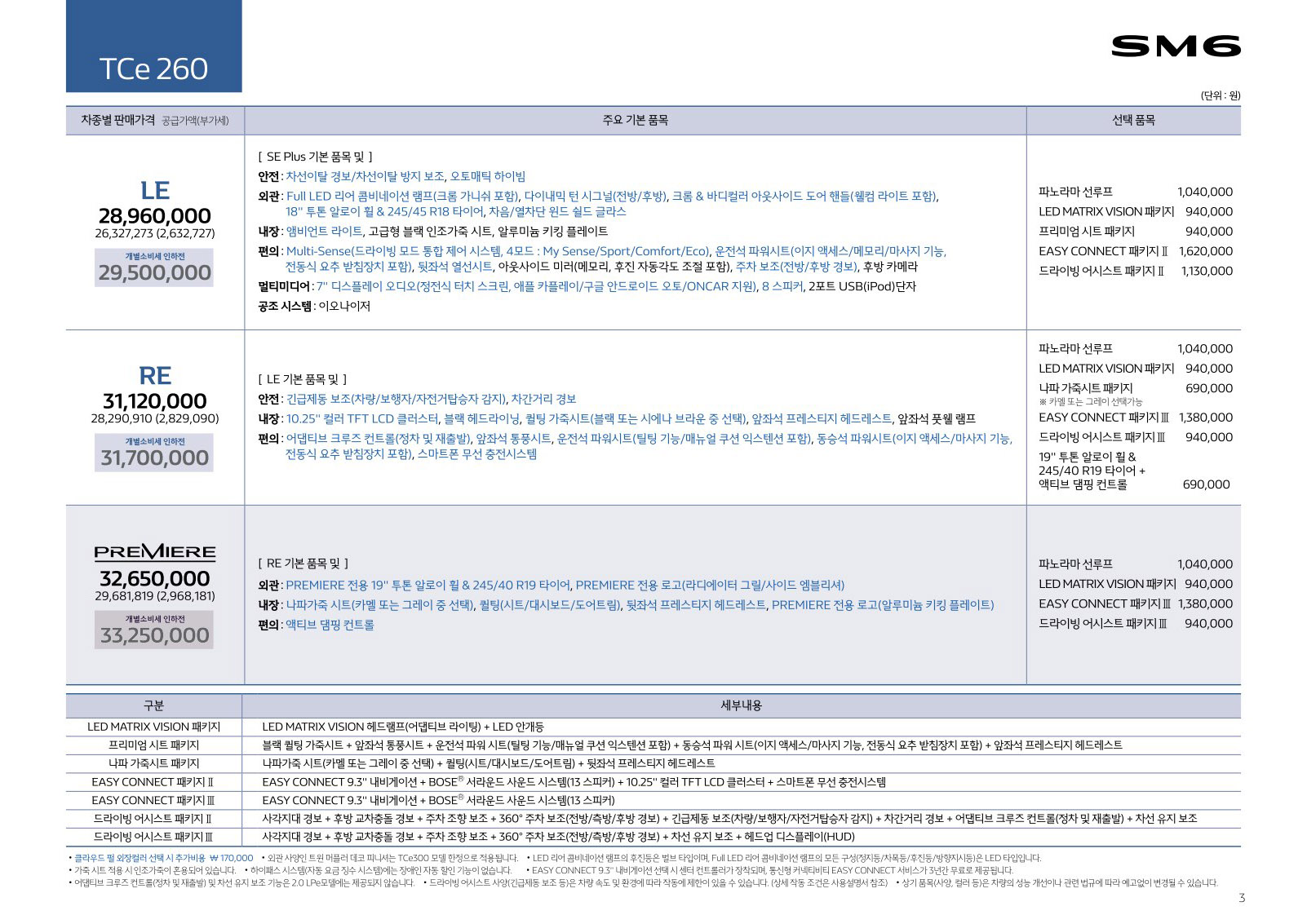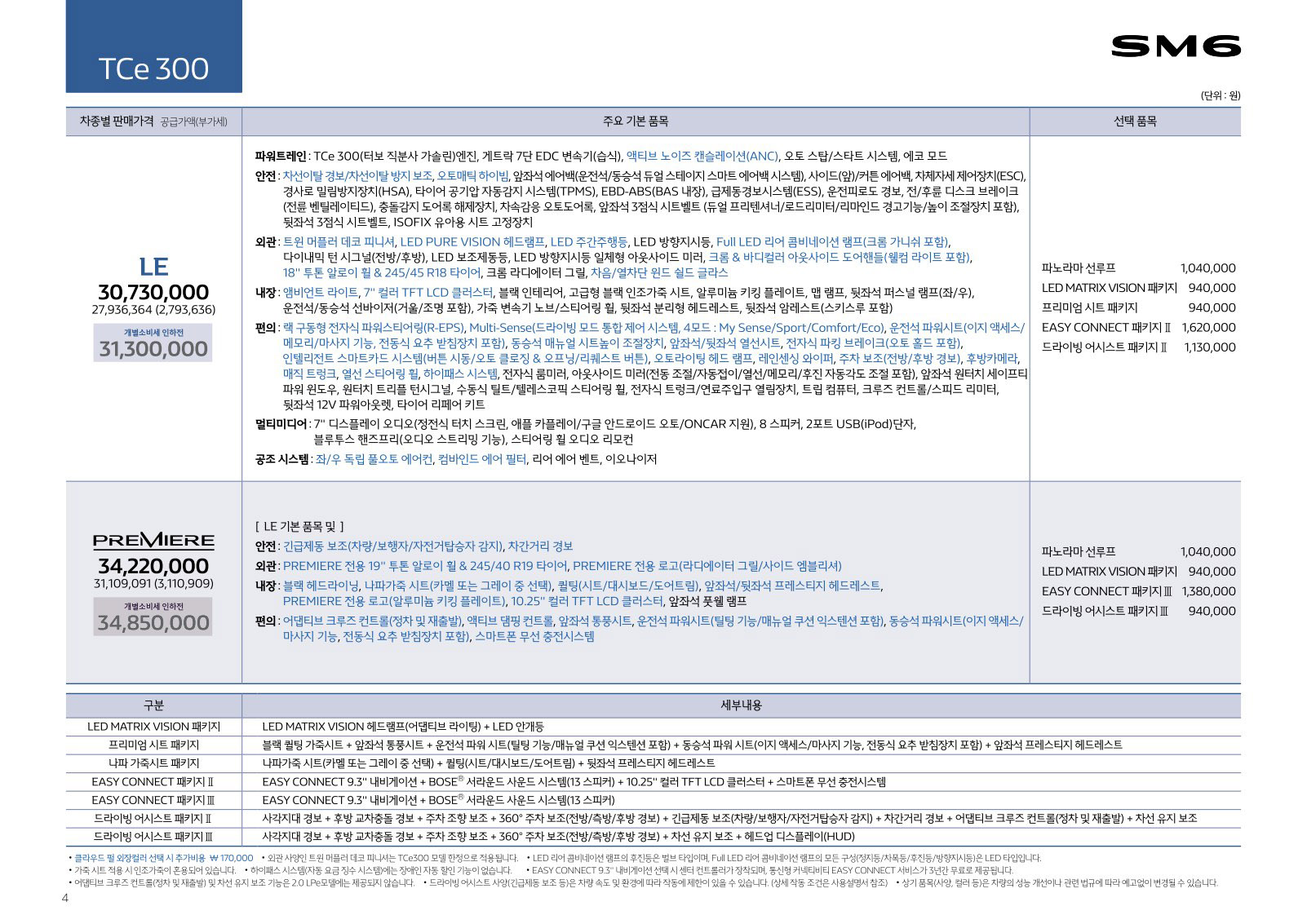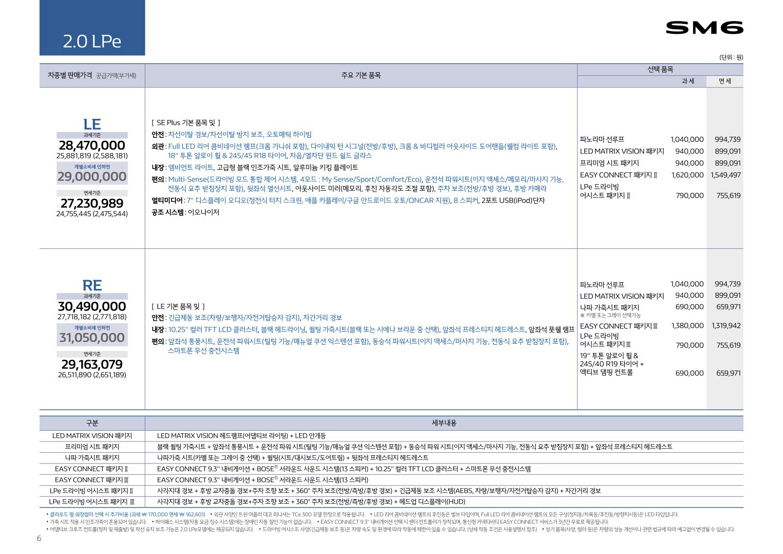 2019년 7월 SM6 가격표 (2020년형 SM6 신차가격표)