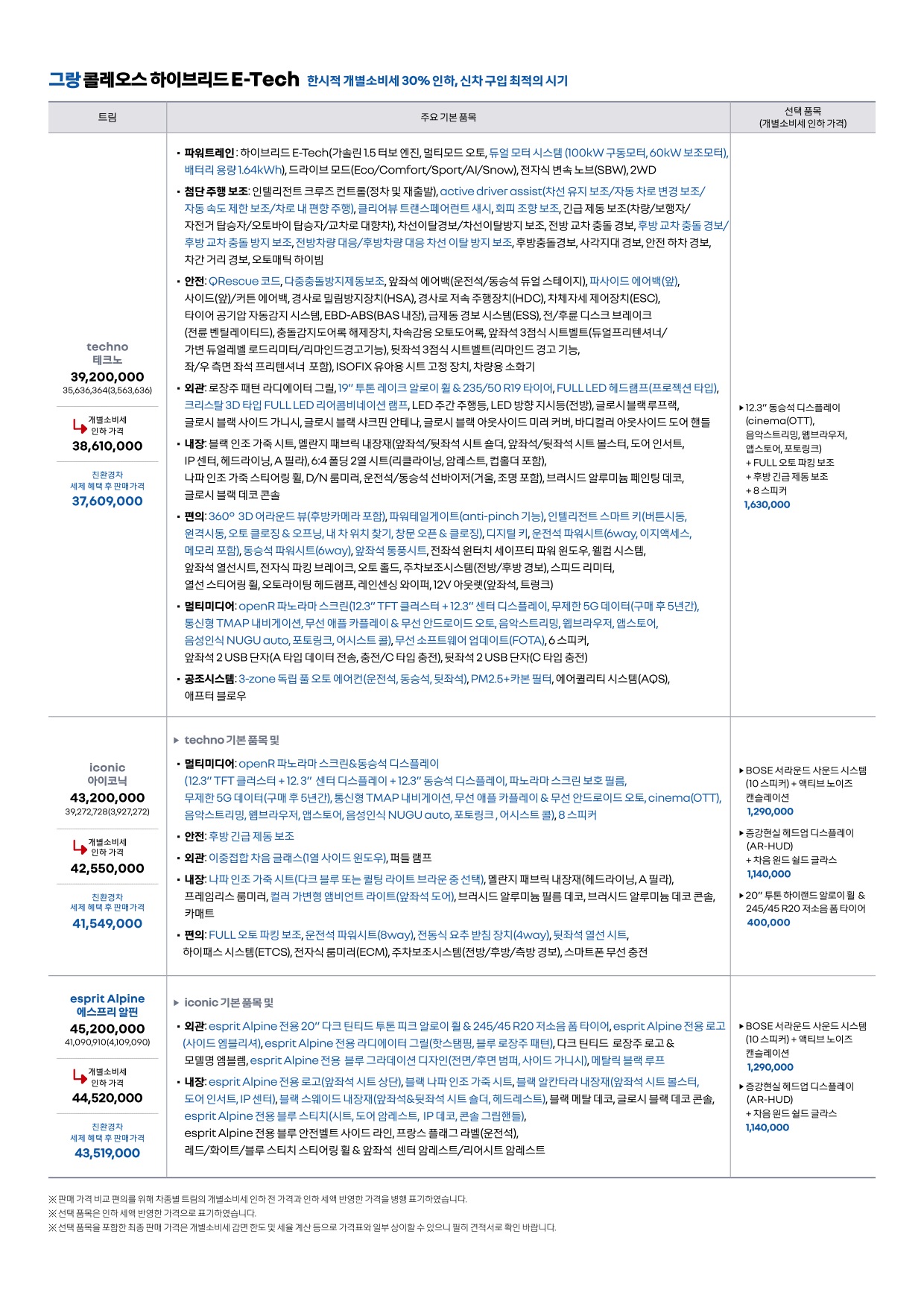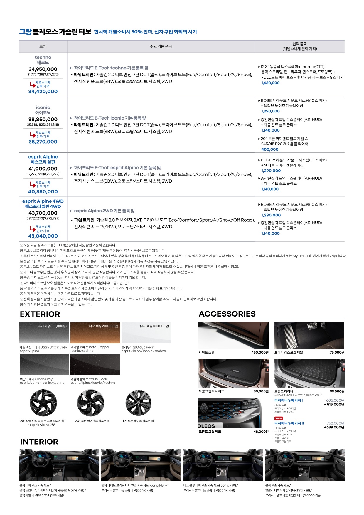 2025년 4월 그랑콜레오스 누아르 에디션(Noir Edition) 가격표