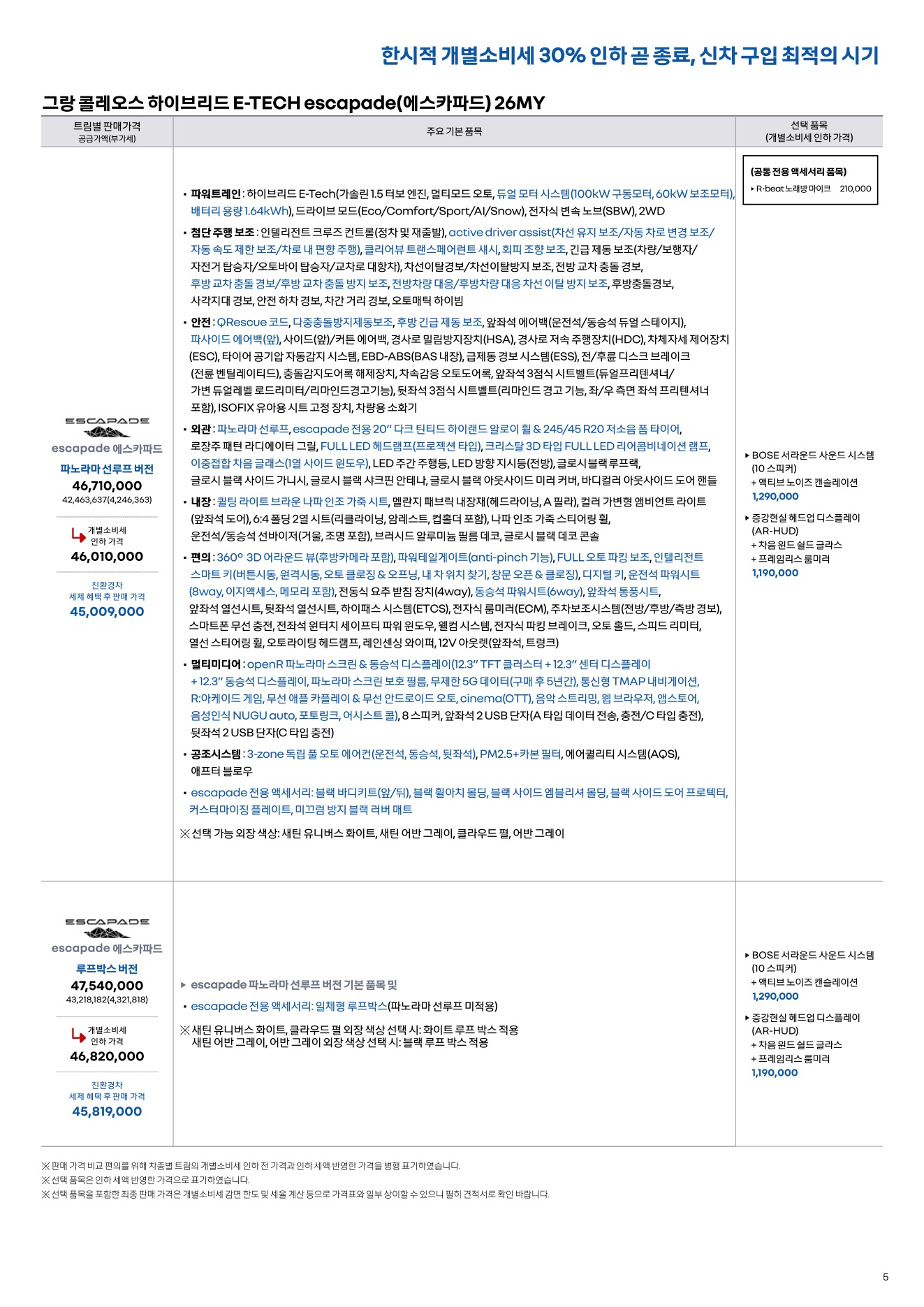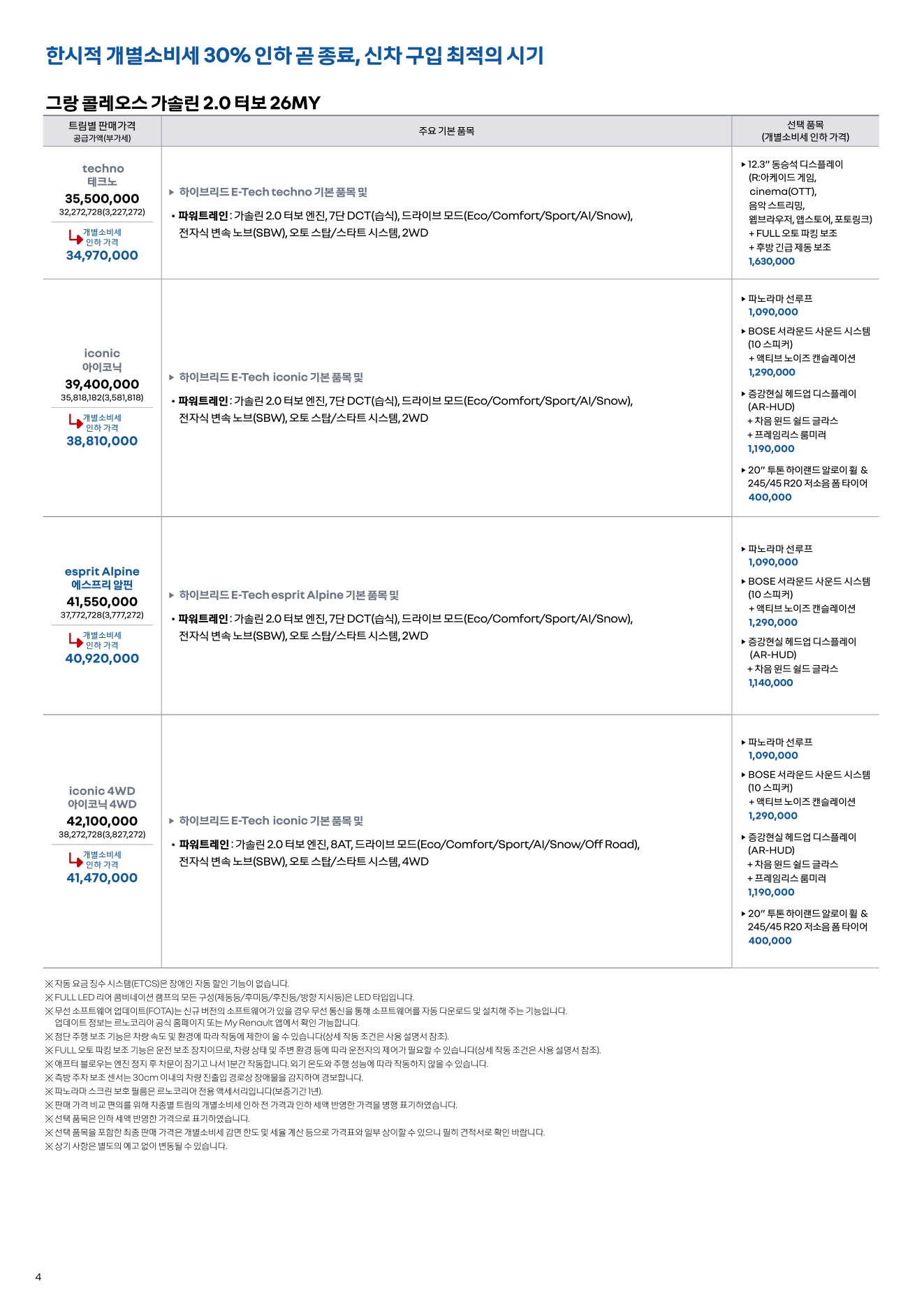 2025년 12월 그랑콜레오스 신차가격표
