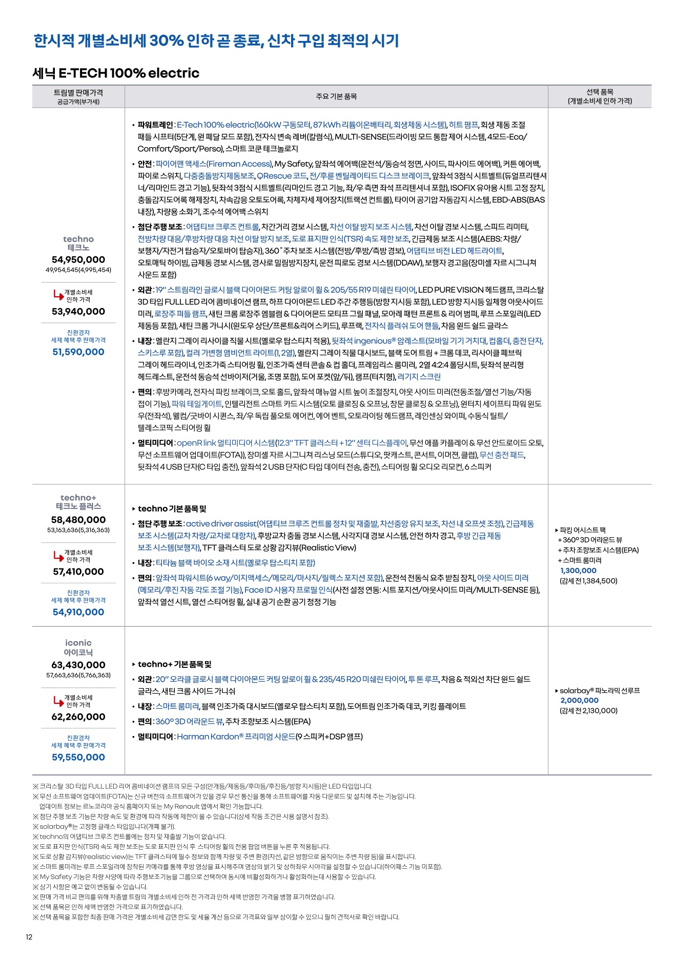 2025년 12월 세닉 신차가격표