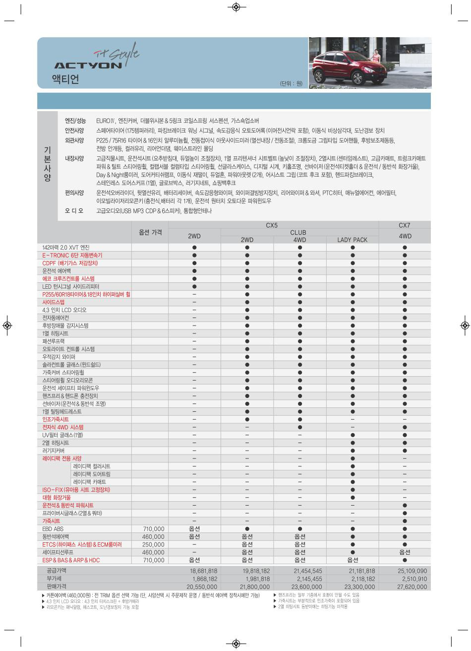 2010년 12월 액티언스포츠 신차가격표