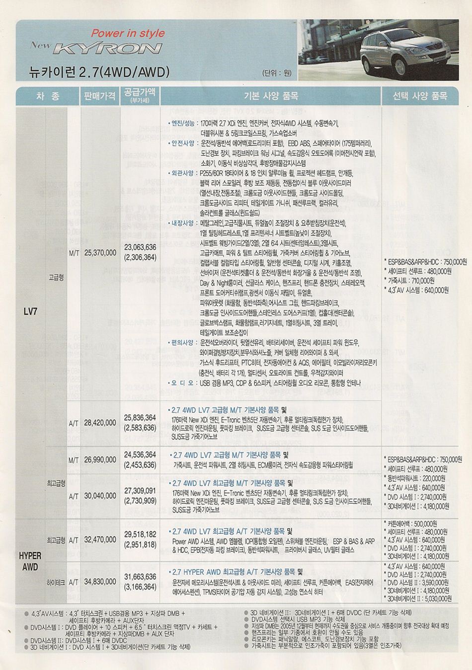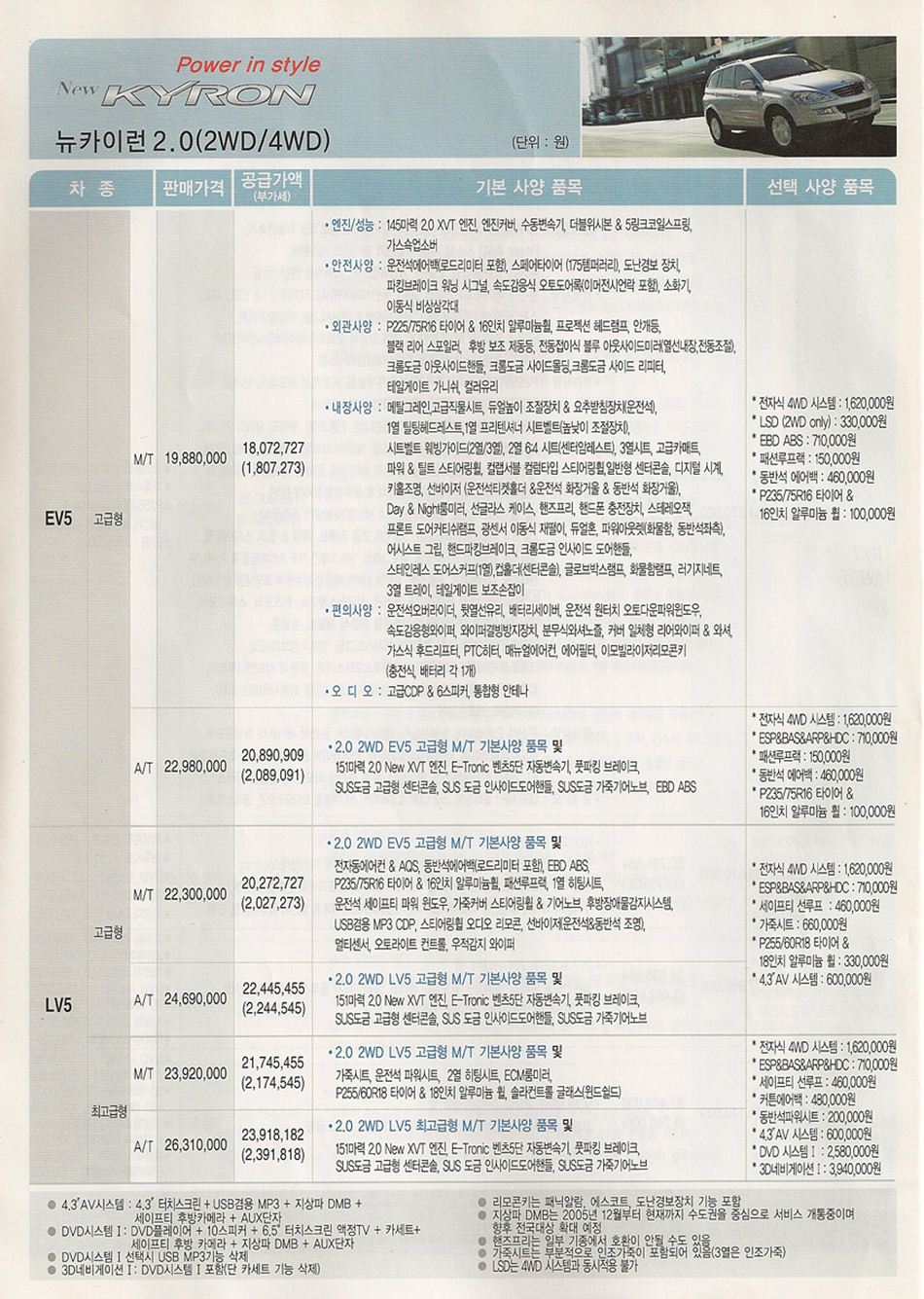 2008년 2월 카이런 (뉴카이런) 신차가격표