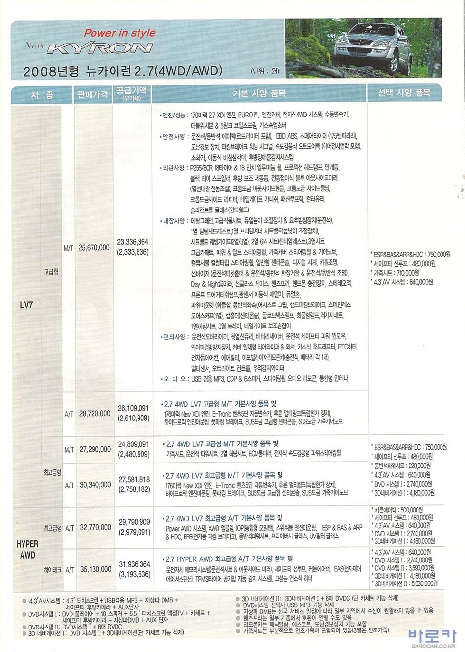 2008년 2월 카이런 (뉴카이런) 신차가격표