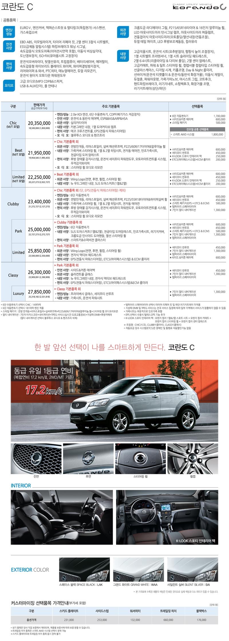 2013년 8월 코란도C (뉴코란도C) 신차가격표