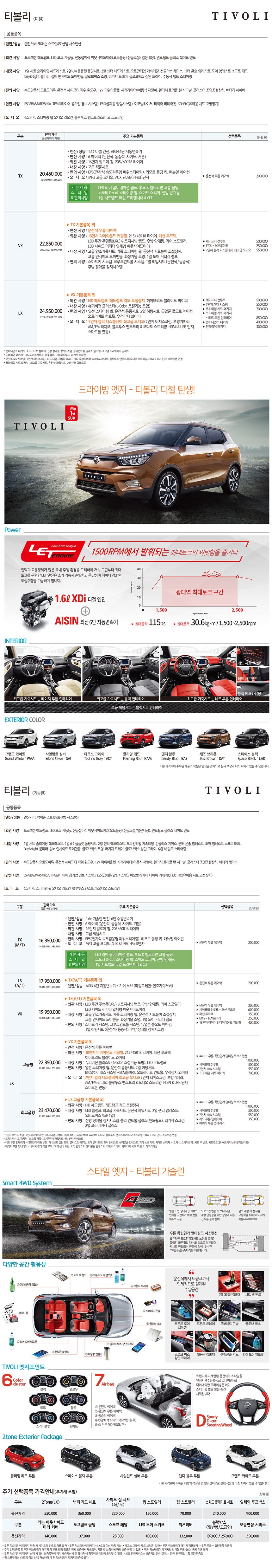 2016년 7월 티볼리 신차가격표