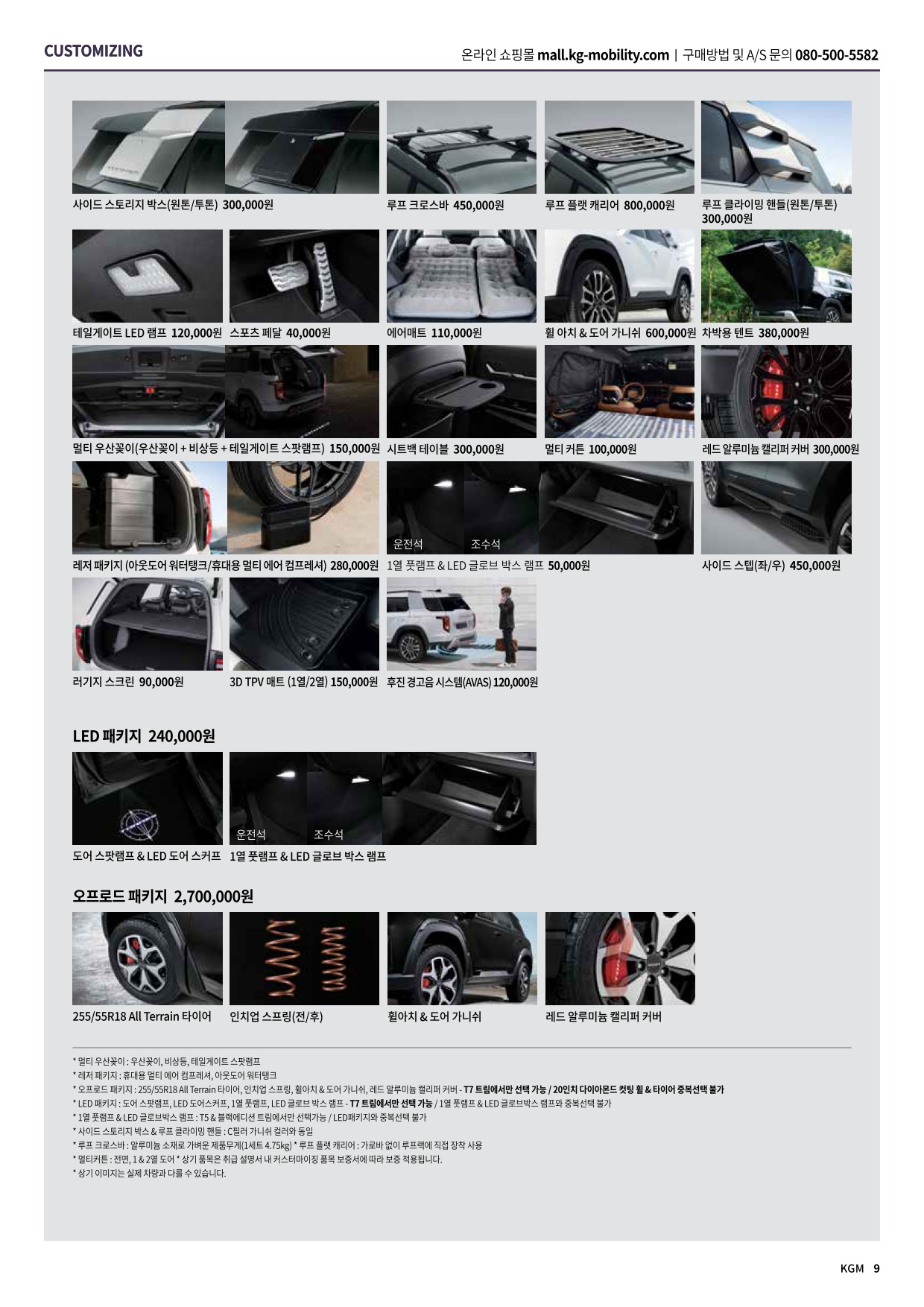 2025년 3월 토레스 신차가격표 (토레스밴, 토렌스LPG 바이퓨얼 포함)