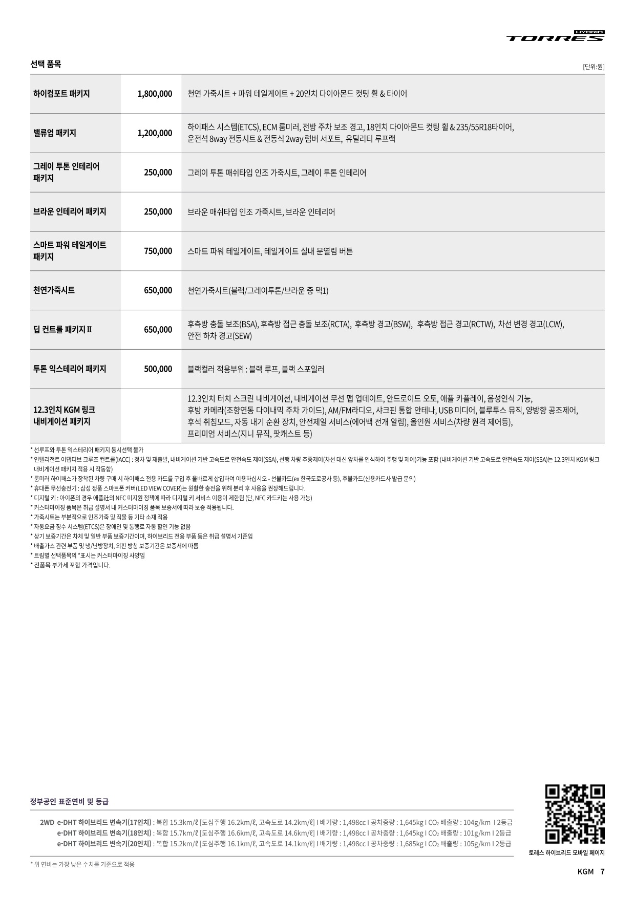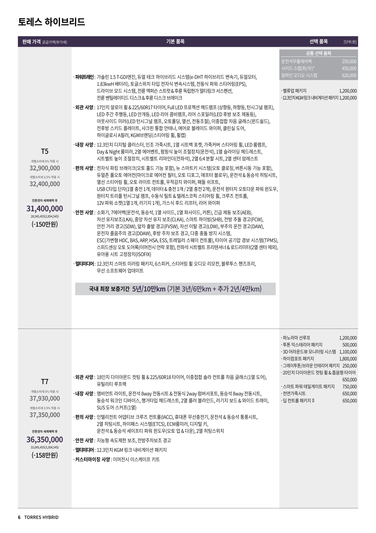 2025년 3월 토레스 하이브리드 신차가격표 (토레스 하이브리드 출시)