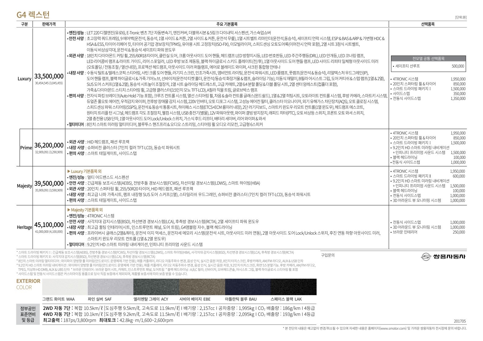 2017년 4월 G4렉스턴 신차가격표