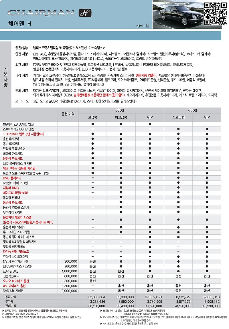 2011년 4월 체어맨H 신차가격표