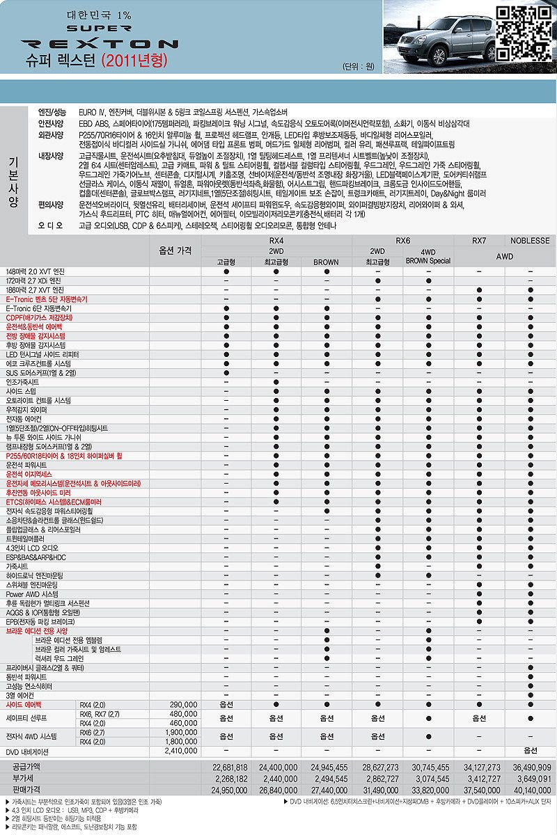 2011년 4월 렉스턴 신차가격표