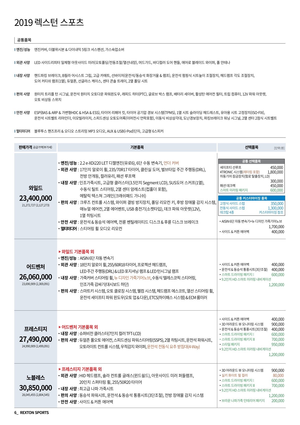 2019년 1월 렉스턴 스포츠 칸 가격표 (롱바디 모델 출시)