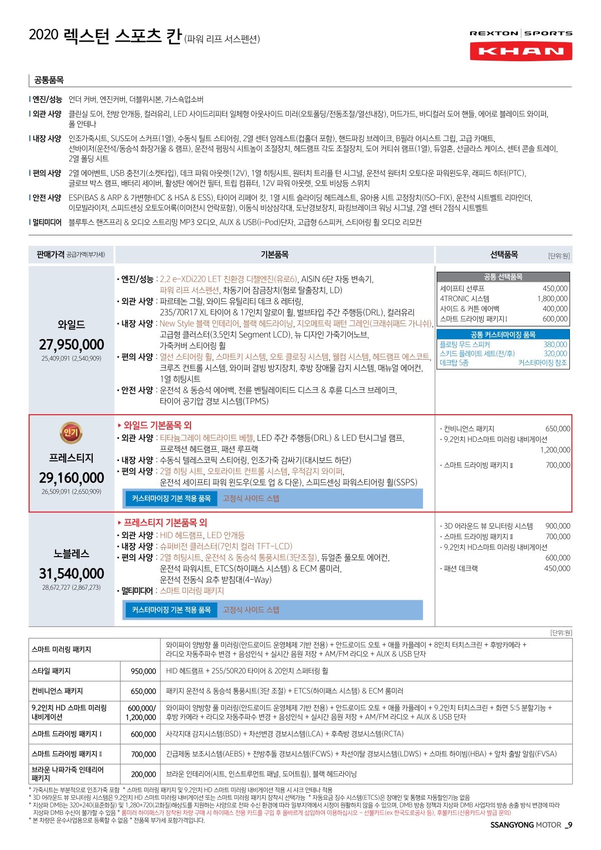 2020년 7월 렉스턴 스포츠 & 칸 신차가격표 (다이나믹 에디션 출시)
