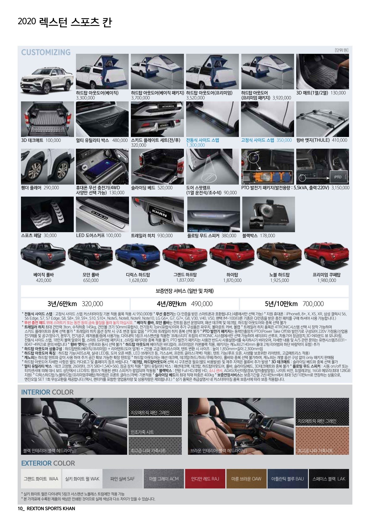 2019년 9월 렉스턴 스포츠 칸 신차가격표 (2020년형 출시)