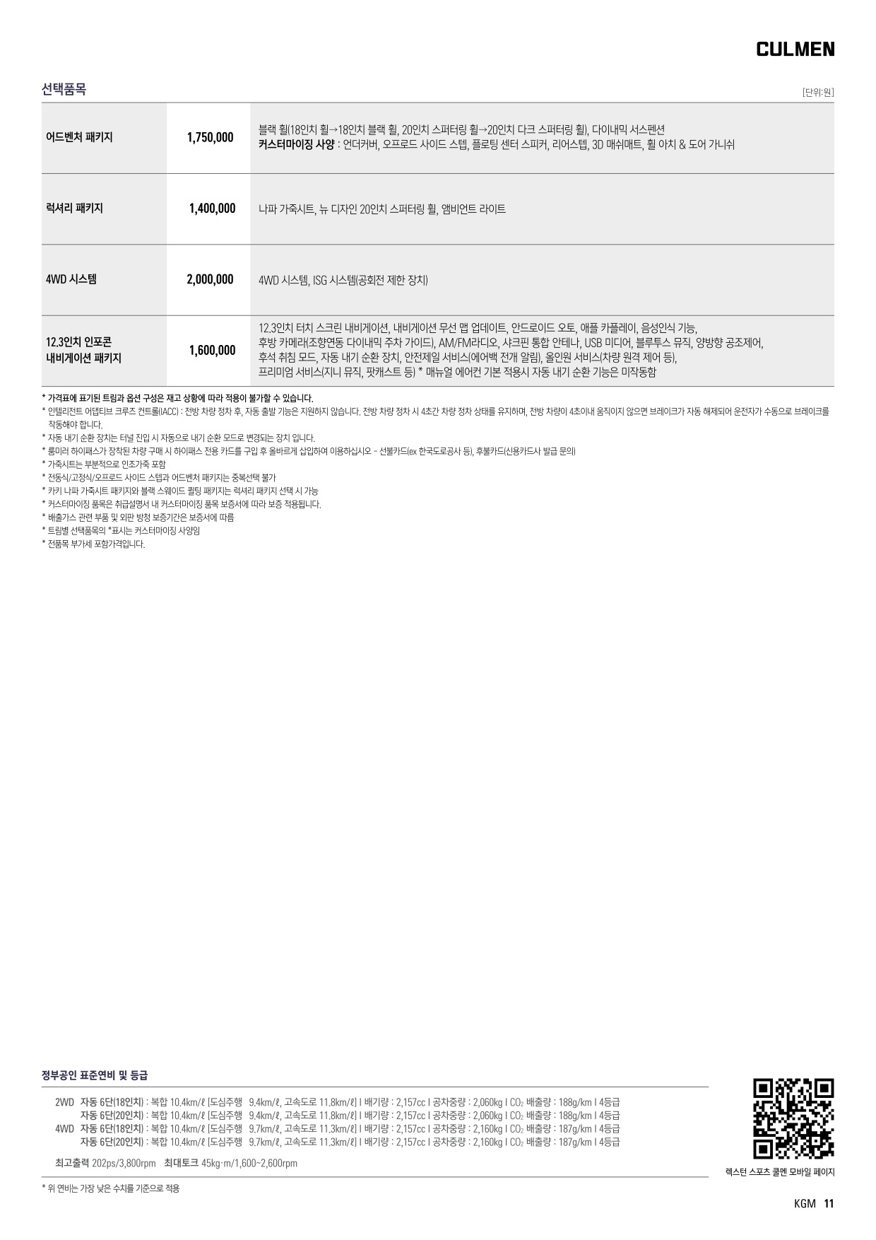 2023년 5월 렉스턴 스포츠 신차가격표 (렉스턴 스포츠 쿨멘 출시)