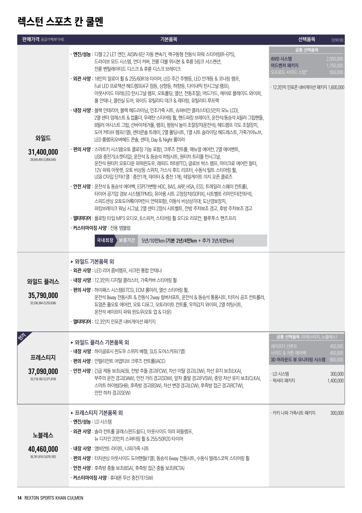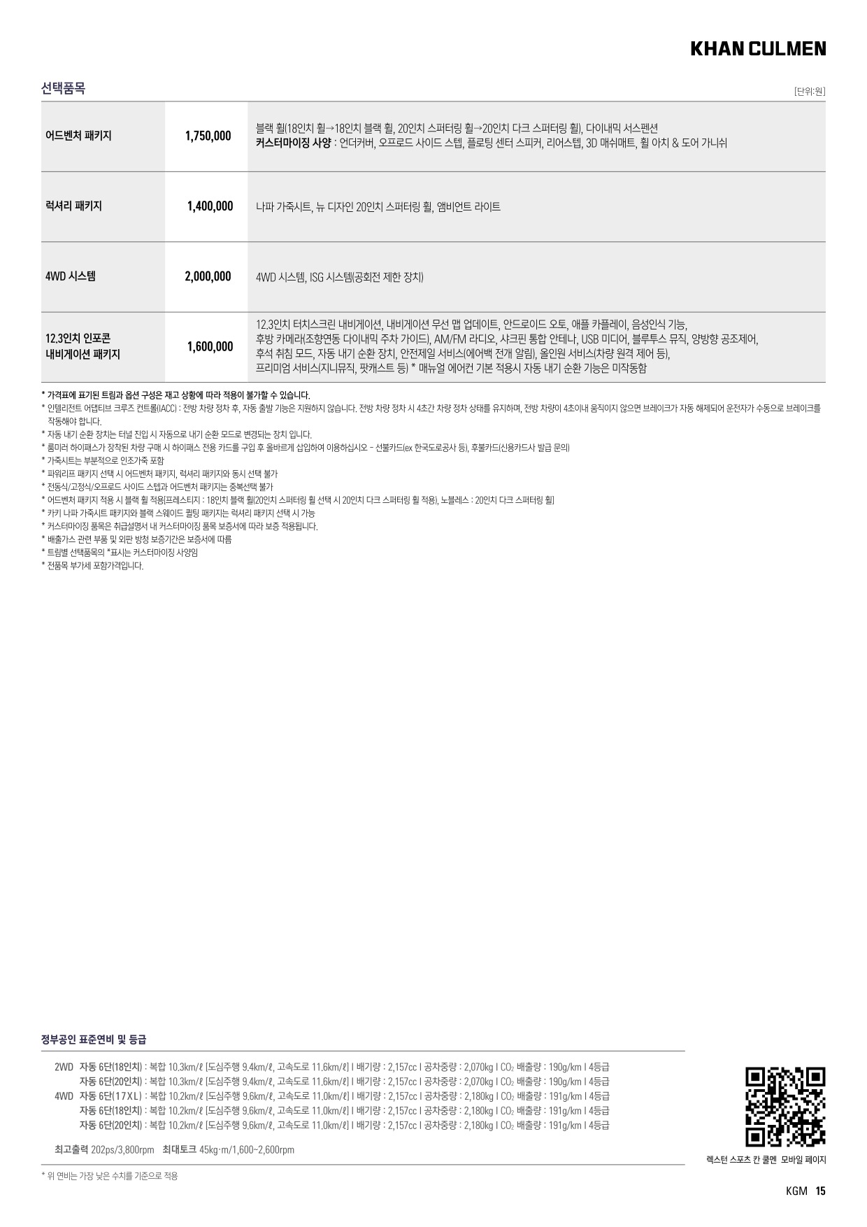 2024년 6월 렉스턴 스포츠 칸 신차가격표