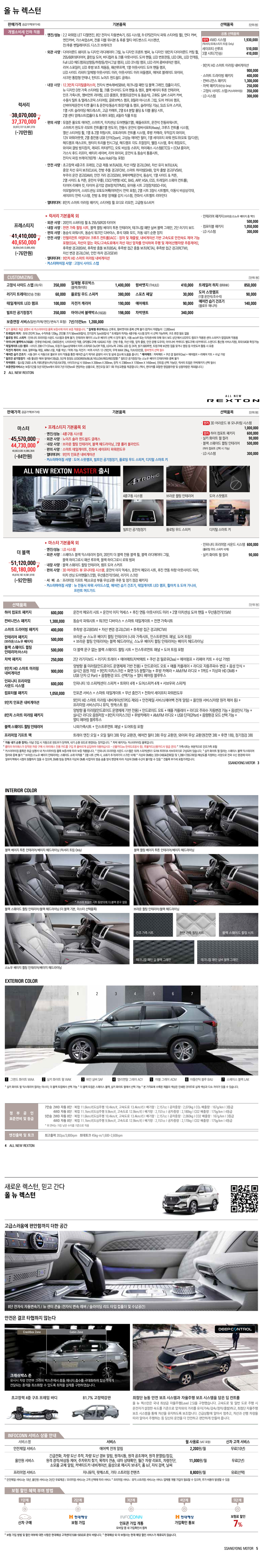 2021년 8월 올뉴렉스턴 신차가격표 (마스터 트림 출시)