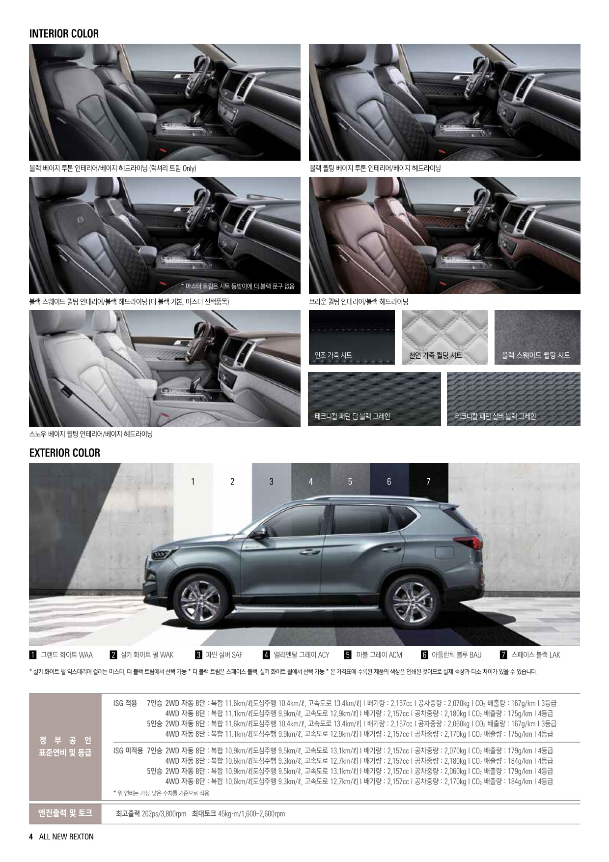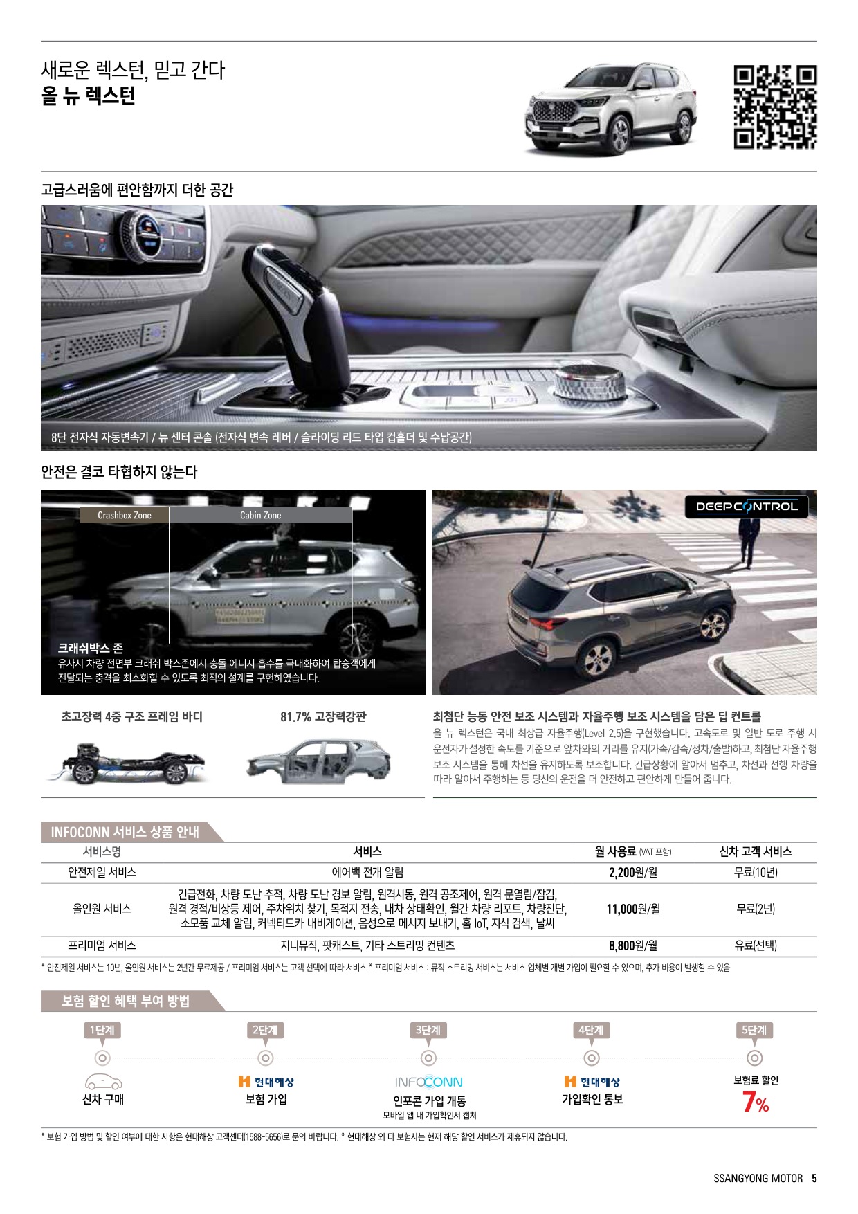 2021년 8월 올뉴렉스턴 신차가격표 (마스터 트림 출시)