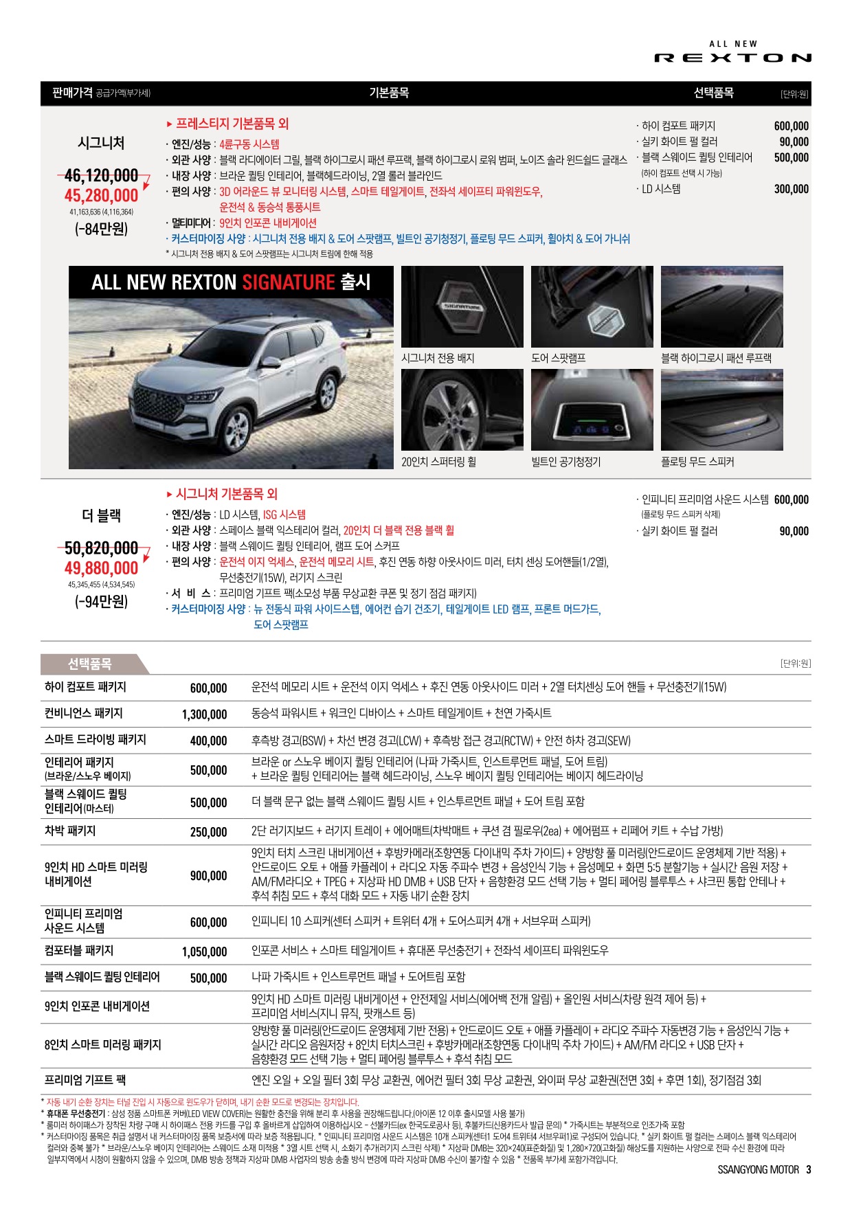 2022년 6월 렉스턴 신차가격표 (시그니처 출시)