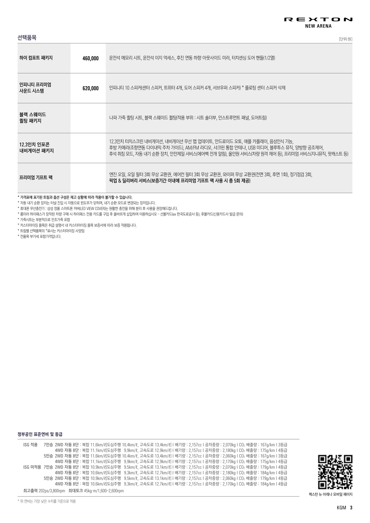 2024년 3월 렉스턴 써밋 신차가격표 (렉스턴 써밋 출시)