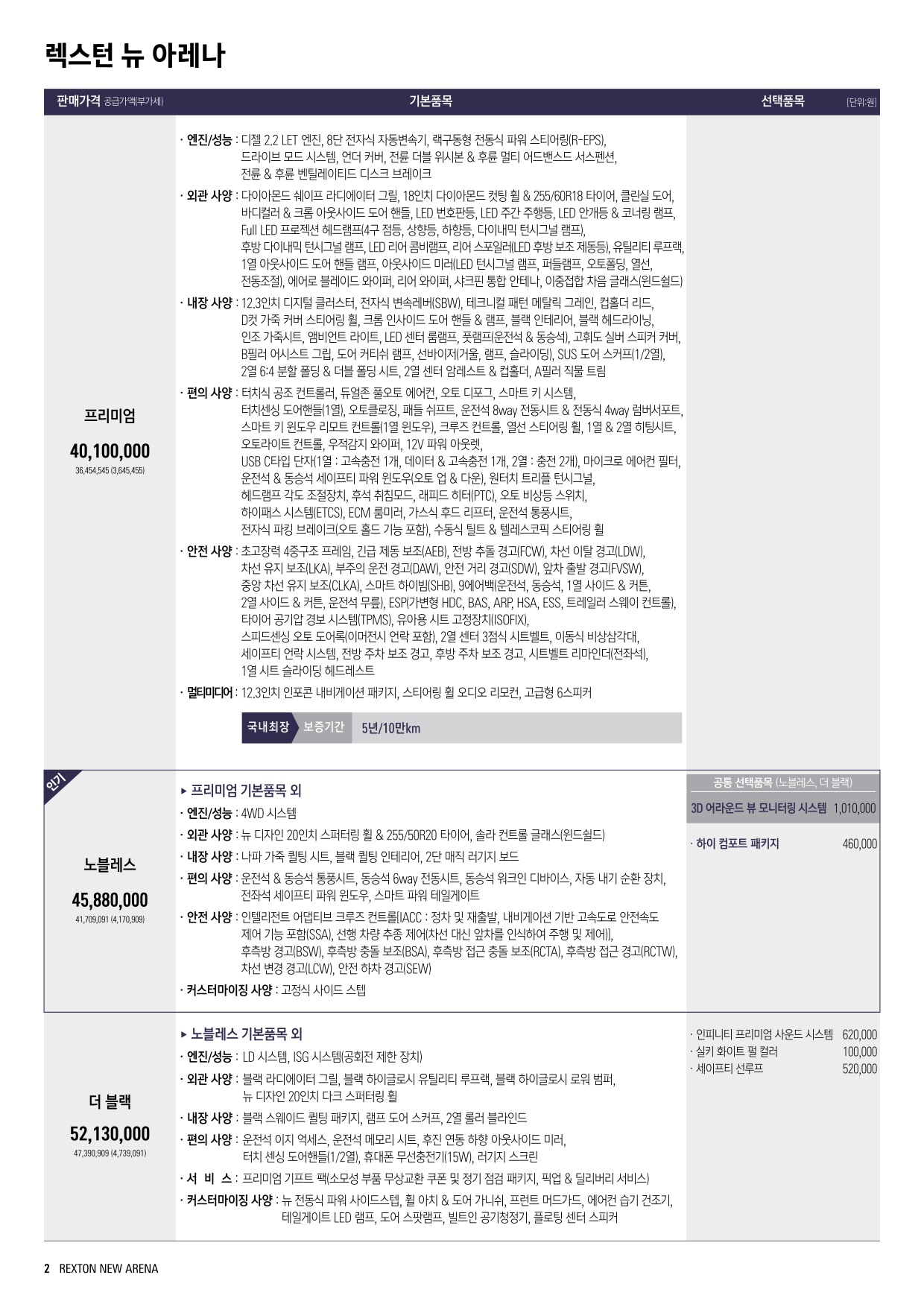 2025년 1월 렉스턴 & 렉스턴 써밋 신차가격표 (2025년형 렉스턴 출시)