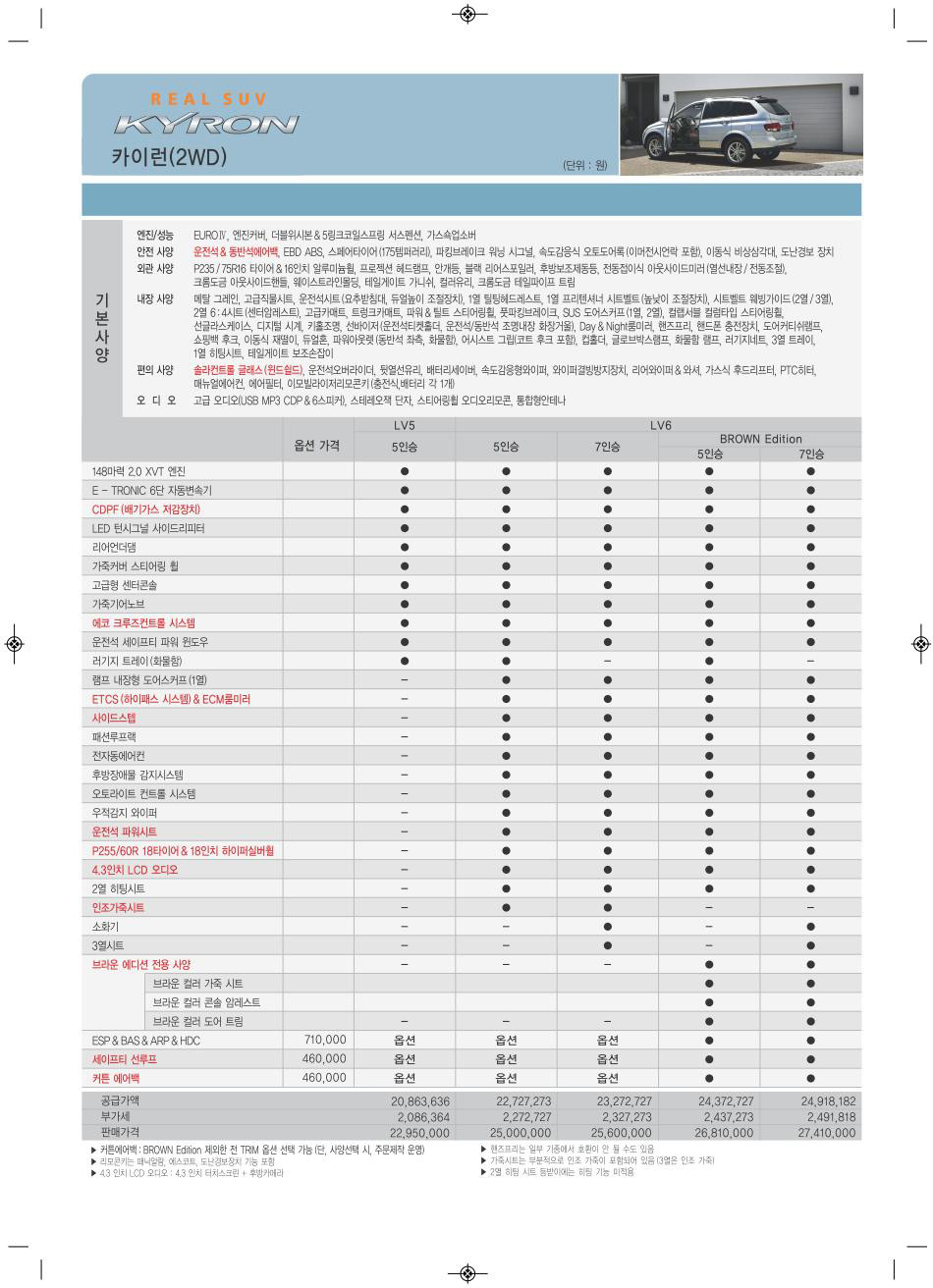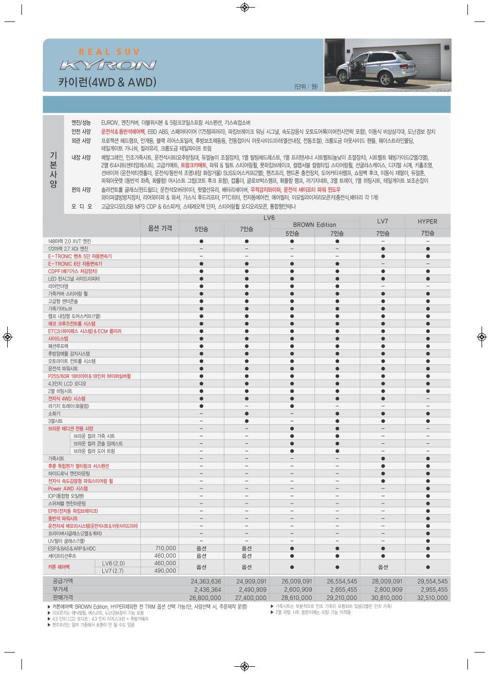 2010년 6월 카이런 신차가격표