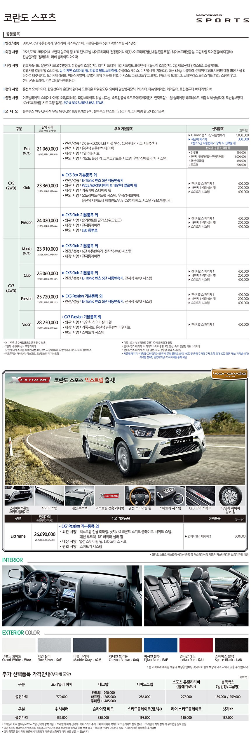2014년 9월 코란도스포츠 신차가격표