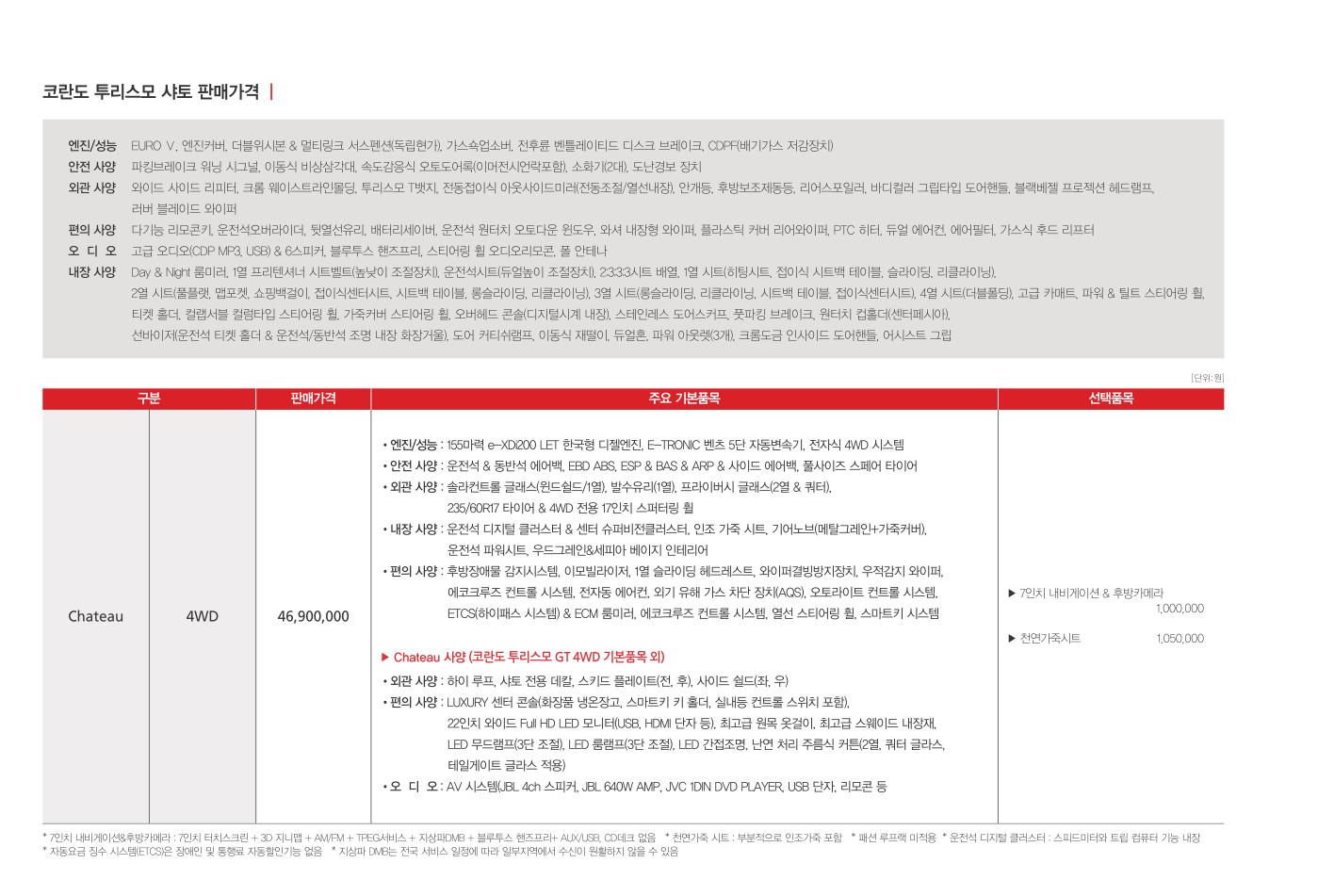 2013년 6월 코란도투리스모 샤토 신차가격표