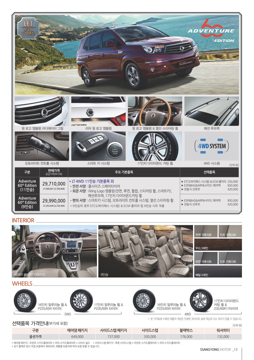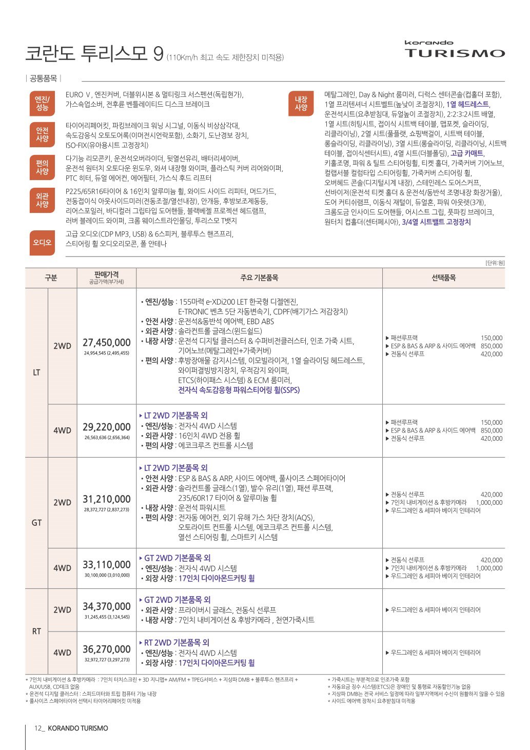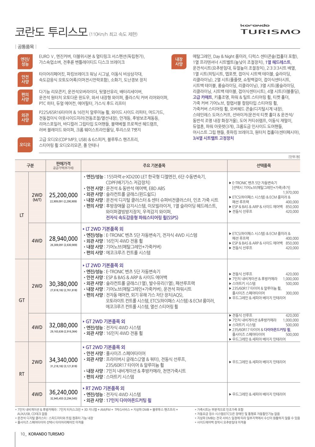 2014년 9월 코란도투리스모 신차가격표