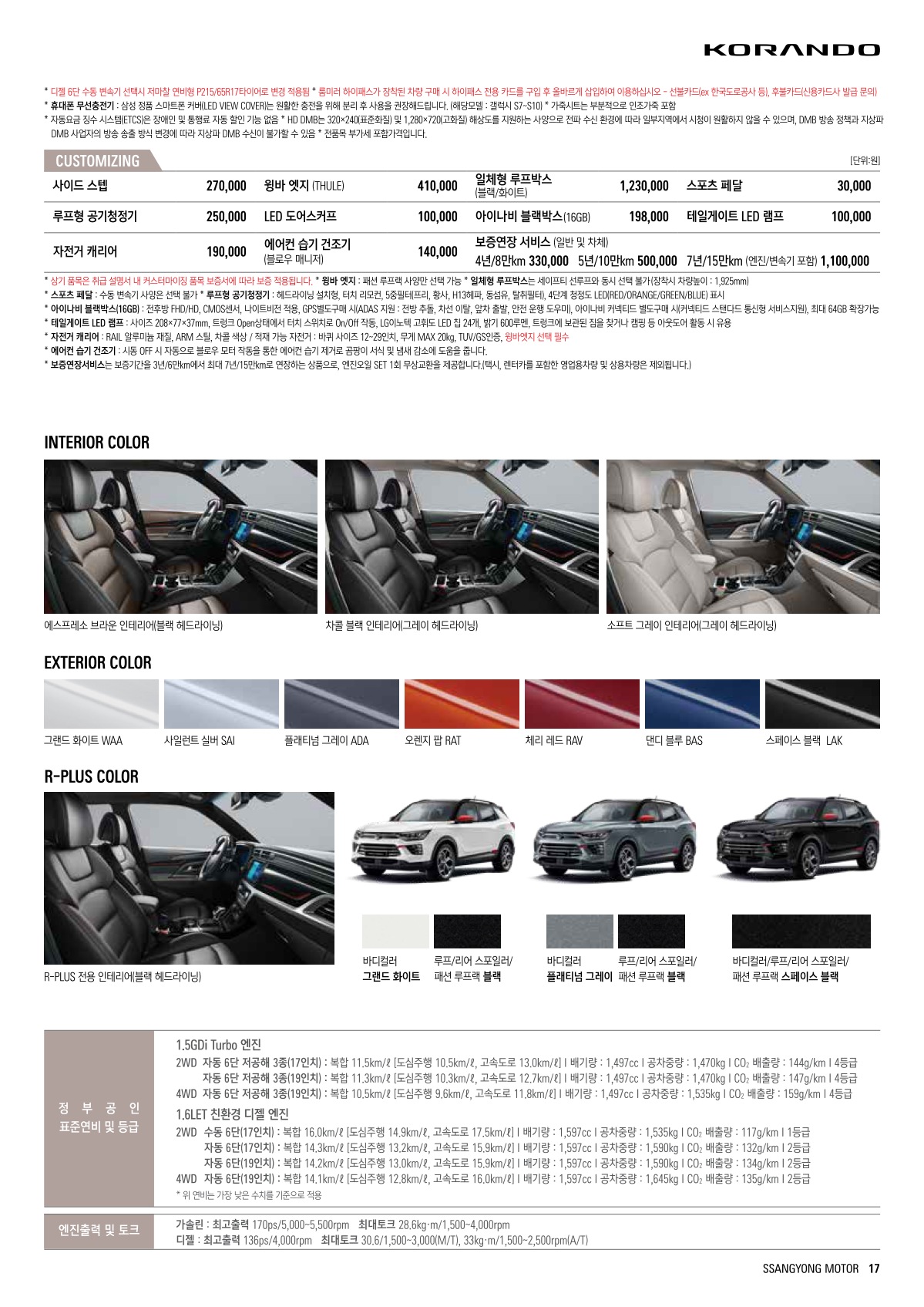2020년 10월 코란도 신차가격표 (코란도 R플러스 출시)