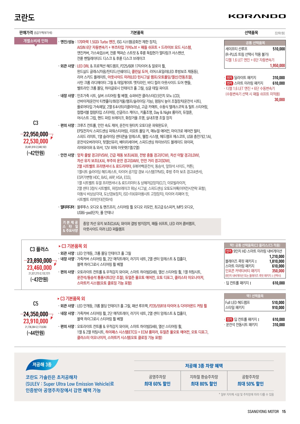 2021년 10월 코란도 신차가격표 (2022년형 코란도)